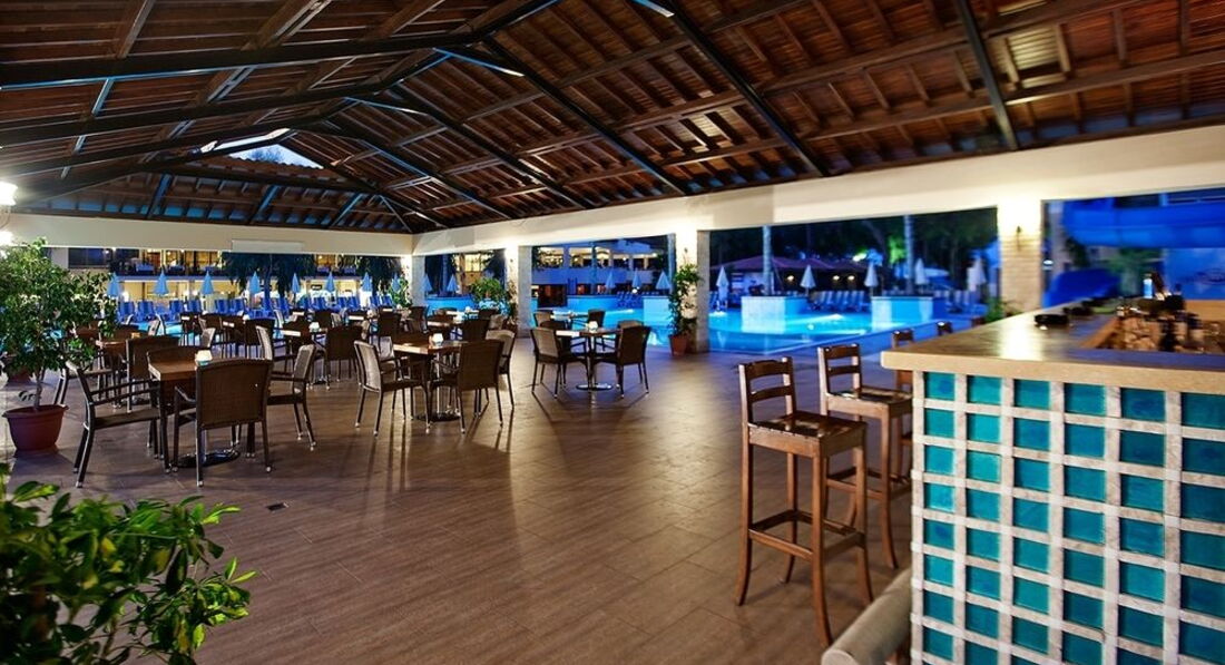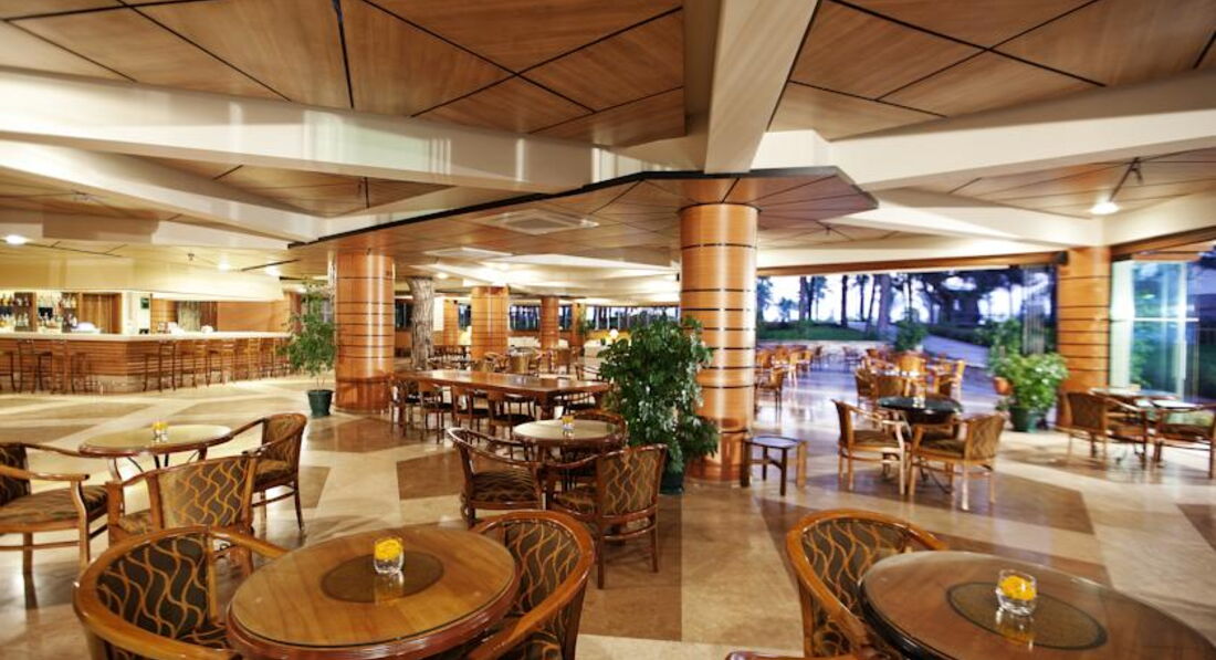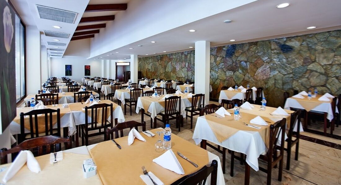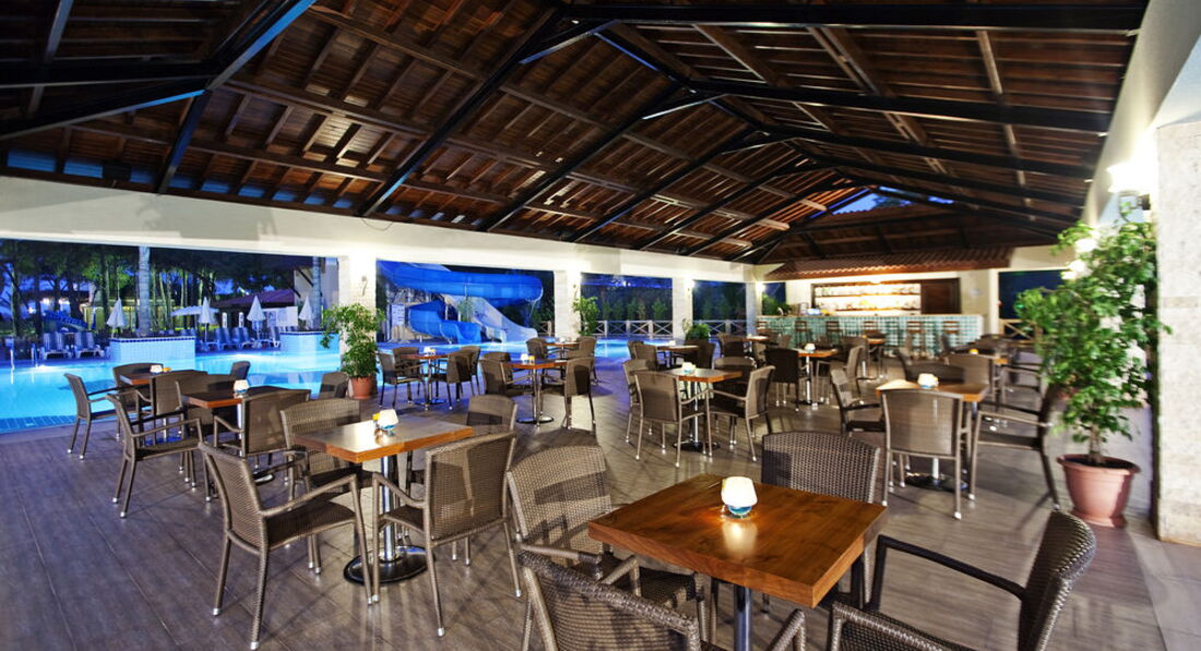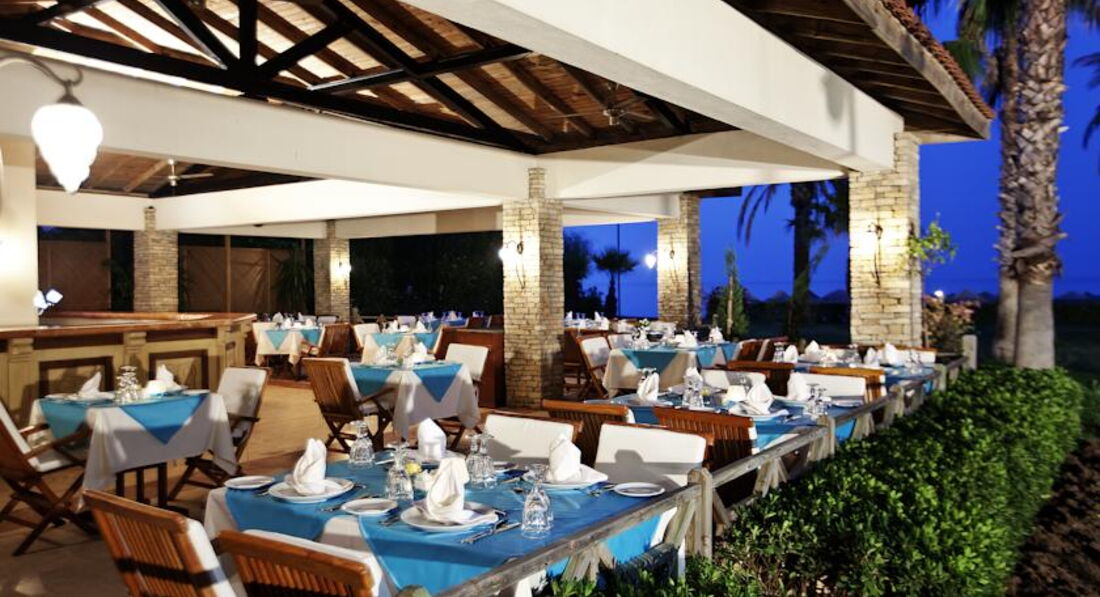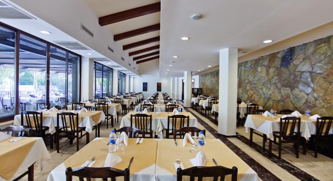Бари та ресторани: головний ресторан – міжнародна кухня, розрахований на 550 осіб, критий, з кондиціонером та терасою, є дитяче та дієтичне меню; бар біля басейну (10:00-00:00), бар (10:00-01:00) – безкоштовно. 1 ресторан A"la Сarte: турецька - відвідування 1 ресторану за час проживання безкоштовно, за попередньою резервацією.