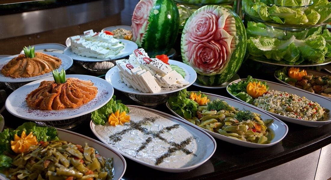 Включає: сніданок (07:00-10:30), пізній сніданок (10:30-11:00, по меню); обід (12:30-14:30), вечеря (19:00-21:30) – "шведський стіл". Свіжі соки, алкогольні напої імпортного виробництва, турецька кава - платно; морозиво, алкогольні напої місцевого виробництва, прохолодні напої, чай та кава – безкоштовно, з 10:00-01:00.