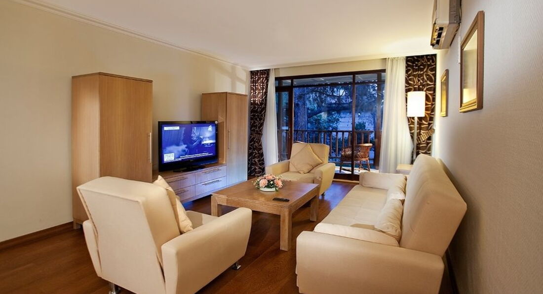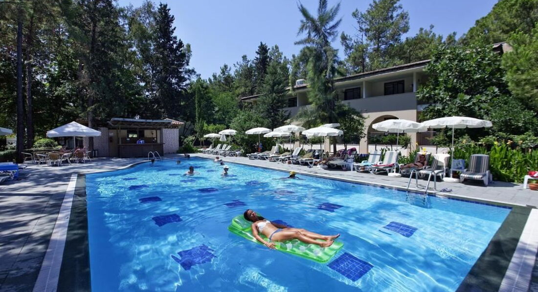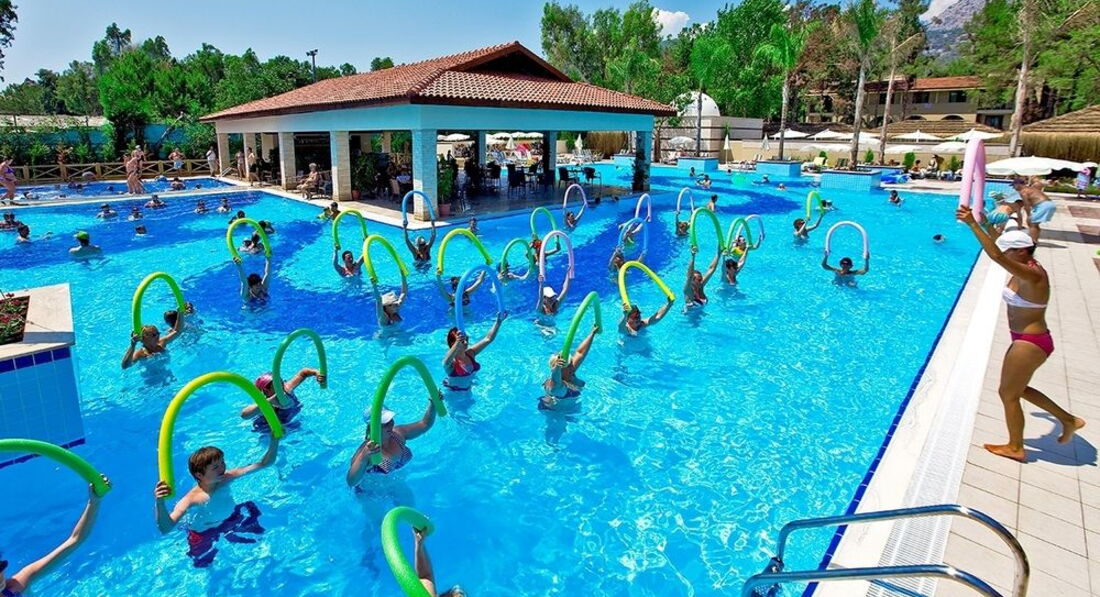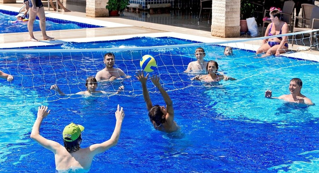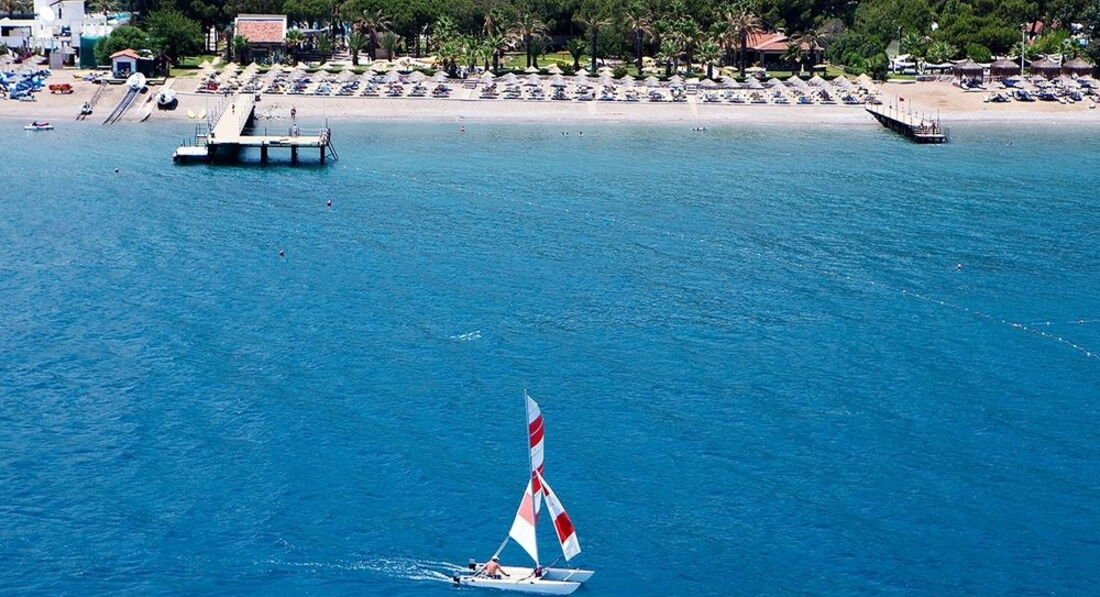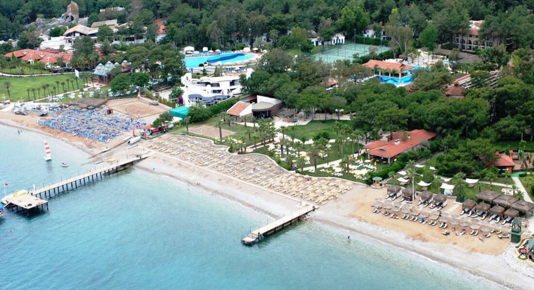 Большая зеленая территория. Отель подойдет для семейного отдыха (отличная анимация для взрослых и детей, детская площадка, есть водные горки, детский и большой бассейн). Для студентов - собственная дискотека. Для спорта - волейбол, минифутбол, стрельба и лука, большой и настольный теннис, бочче ...Вкусное и разнообразное питание. Чистые номера. Дружелюбный персонал ресторана. Напротив отеля размещено множество магазинчиков (рынок). Прогулочная яхта и катер (банан, парашют) размещены на пляже отеля