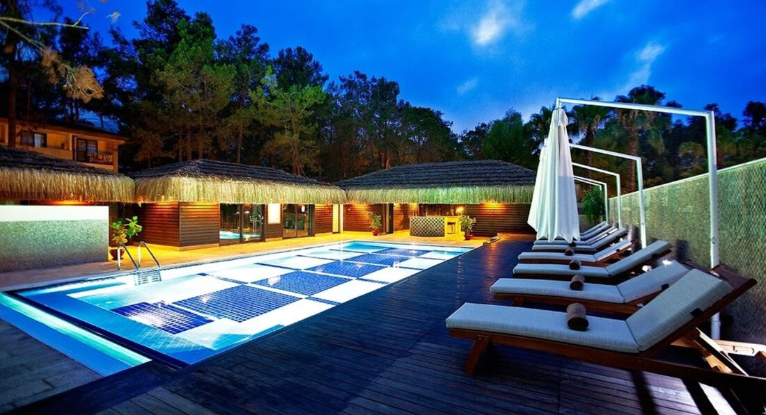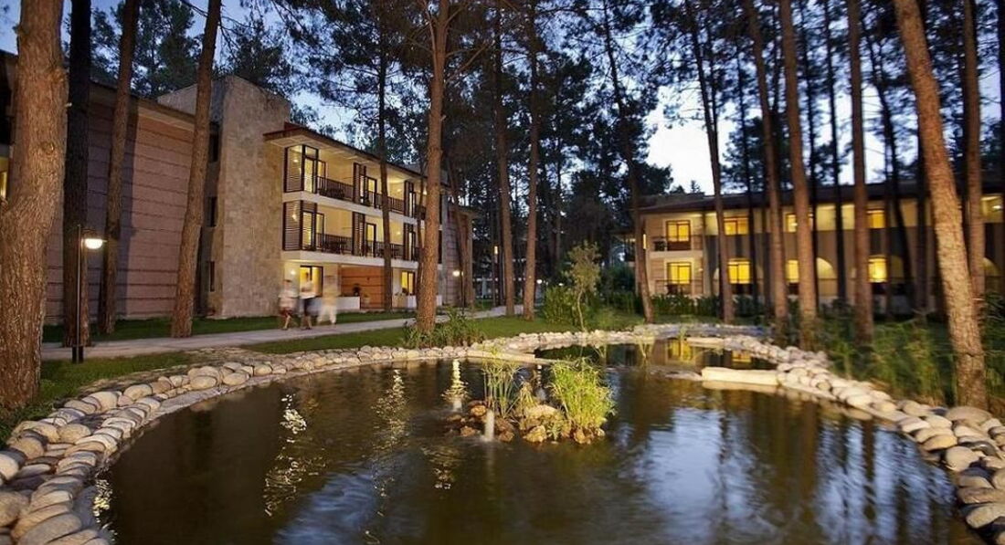 Прекрасный отель. Сосны, эвкалипты. Очень ухоженные бассейны. Достаточное свежее питание (гриль - и мясо и рыба всегда на отлично). Сладостей, как обычно, море. Арбузов уже, к сожалению, не было. Были яблоки, сливы, виноград, груши, гранаты. Питание традиционное для Турции. Наибольший выбор блюд на ужин. Сок в автоматах, вполне себе приличный. В октябре в ресторане не было ажиотажа, столик можно занимать, какой нравится. Уборщица - без замечаний (Влажная уборка - ежедневно, смена белья через день, полотенца - ежедневно. Однажды ее замещали - пол не мыли, пепельницу не вытряхнули. Доллар взяли) Особо хочу отметить обустройство корпусов - очень продуманно построенные (на века, из камня) и удобное расположение (похожее видели в Сингапуре) Видимо, именно поэтому ни разу не воспользовались кондиционером - всегда в номере комфортно по температуре и вентиляции. Территория ухоженная, садовники стараются. Сейфы платные. Анимация нас не интересовала. Пляж по уборке не идеален. В воду с берега не зайти - крупная галька и валуны. Только с пирса. Море идеальное, температура воды 25, за 8 дней три дня были облачными. В барах, что удивило, минимален набор бесплатных алк.коктейлей . Мохито стоит 12 дол. Впервые вижу такое чудо в Турции. Турецкой кофейни тоже нет. Это грустно. Для отеля такого уровня это было бы приятным бонусом. Кофе только в кофемашинах и весьма средний. Ужаснул СПА. Неприятные подробности опускаю, но надо было прислушаться к гиду и обязательный хамам посетить в другом месте. Впервые не получила никакого удовольствия, а даже совсем наоборот, и это за 35 дол. Порадовал фотограф. Очень приятный в общении и профессиональный молодой человек. Фото приятно порадовали и качеством и ценой. Резюмируя, рекомендую отель как нешумный, домашний, зеленый , для спокойного семейного отдыха и общения. Впервые возникло желание еще раз туда вернуться, если, конечно, обзаведутся кофейней и будут подавать кофе по-турецки в чашечках... Ну и сделают дорожку для входа в море с пляжа.