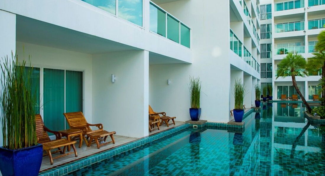 Отель... Прогулявшись в следующие несколько дней по округе, поняли, что отель у нас прекрасный по виду и обустройству территории. Ресепшн маленький (но кого он интересует на отдыхе), бассейн не глубже 160 см, длинный (можно устраивать заплывы =) ).... Удивило, что купаться в нем можно и после захода солнца (похоже вообще в любое время). Не особо приятно гудят насосы, но к ним привыкаешь. Полотенца из номера можно брать на лежаки (видели и на пляже.. но сами не стали выносить с территории), для пляжа купили плетеную подстилку (легкая и недорогая 100-200 бат(торгуйтесь)) )) Жили на 3 этаже, пляж видно из номера, но напрямую мешал пройти спортклуб. Ниже в отзывах очень понятное объяснение пути (в общем близко, на мой взгляд).