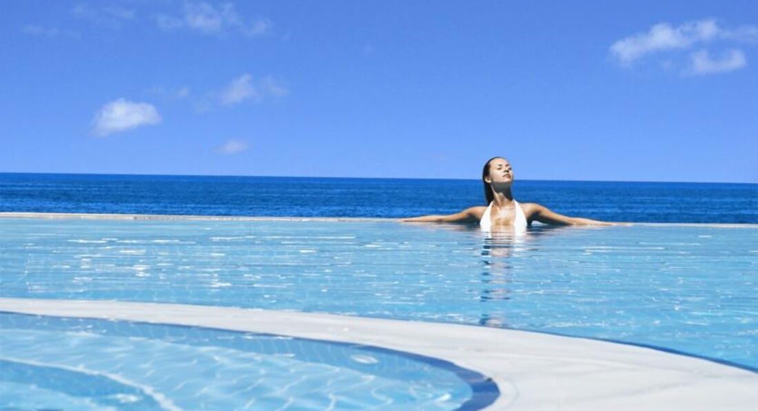 • парасольки, шезлонги та шезлонги біля басейну