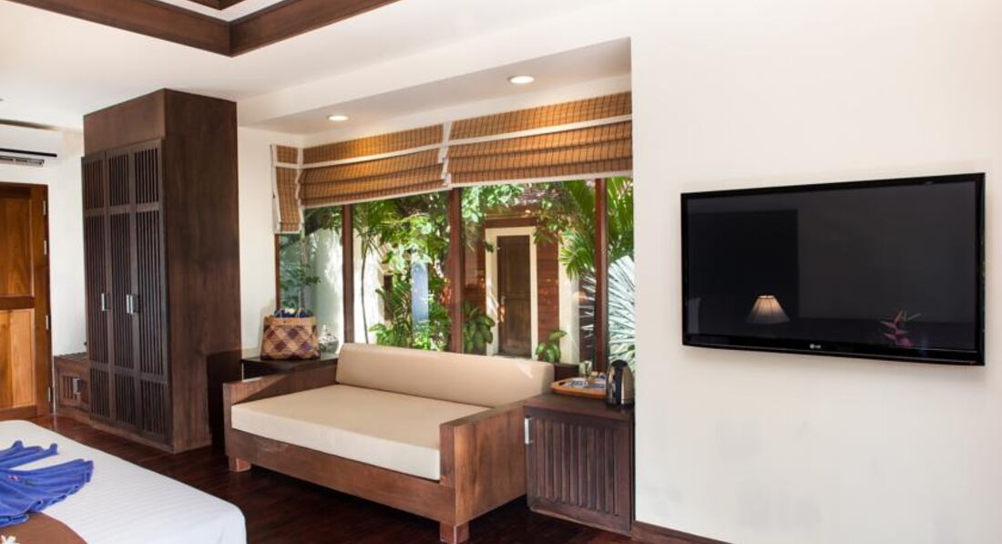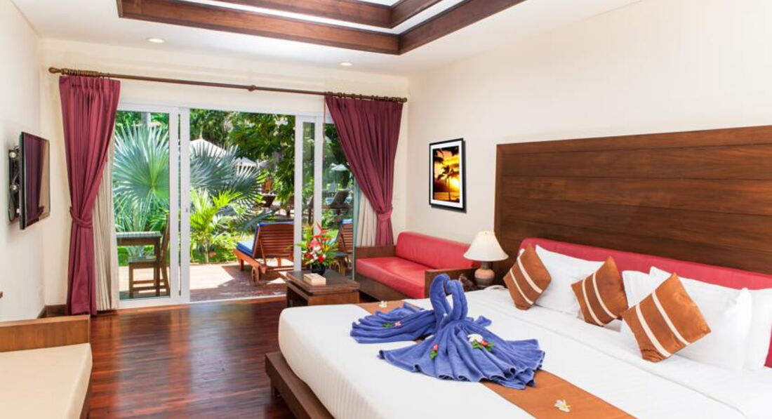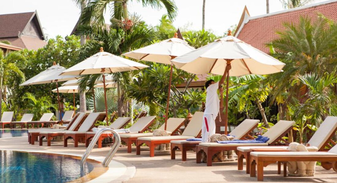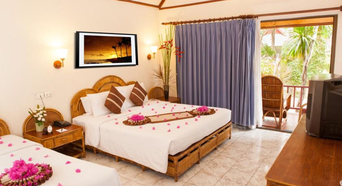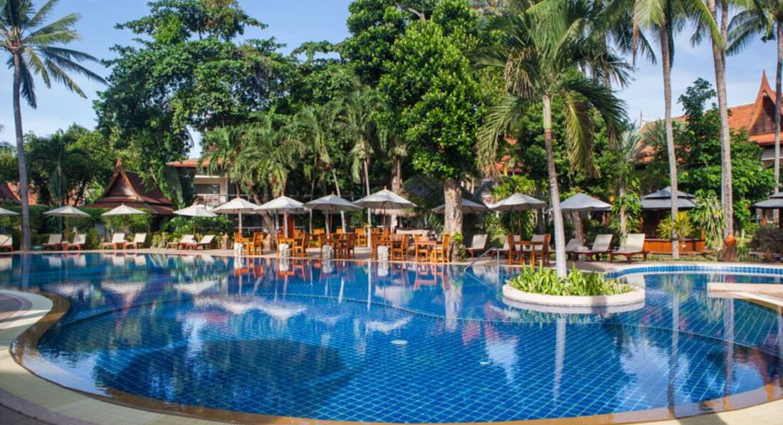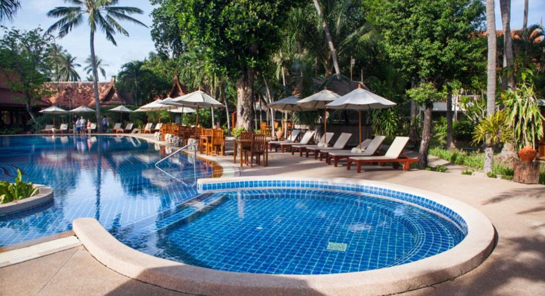 Жили в бунгало 803 с 16.06.17 по 25.06.17.Отличный большой и чистый бассейн, жили в бунгало вилледж за дорогой, тишина, пение птиц и иногда с дороги вопли рекламы тайского бокса. Вся инфраструктура рядом. Красивый пляж.Кондиционер в бунгало расположен в корридорчике у санузла и не дует на кровать.Новый 40дюймовый жк телевизор, один русский канал НТВ.Уборка была очень хорошей, постели меняли раз в 2-3 дня.Каждый день "комплимент"- печенька и нарезанная папайя, ерунда, а приятно. Завтраки обычные дл ЮВ Азии, но дешевле не брать и самим ходить на завтраки, рядом кафешек полно.За 9 ночей с завтраками на троих заплатил около 30 000 руб