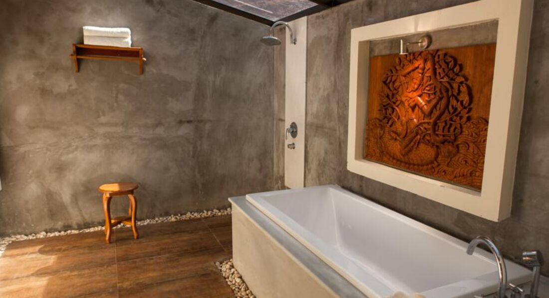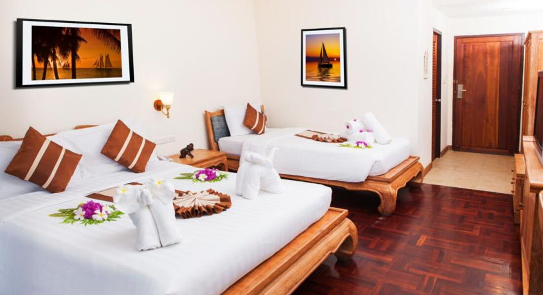 Старый номер. Одна розетка не работала, розеток вообще мало. Кондиционер работает "на последнем издыхании". Горячая вода отсутствует как таковая, только теплая, душевая лейка замотана изолентой. Термопот тоже пора выбрасывать.С задней стороны домы распределительный электрический щиток распахнут, моток проводов торчит, при дожде как-то неуютно.Бронировался 3х местный номер с завтраками, но по приезду мне объявили, что завтраки оплачены только на 2х гостей, за 3го пришлось доплатить из расчета 250 бат в день, в расчет стоимости номера должный сразу закладывать завтраки по количеству гостей в номере.