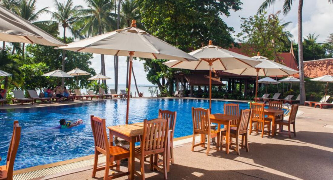 Летели Москва-Бангкок(2 дня)-Самуи Трансаэро(сколько раз зарекался не летать, но в этот раз график вылет-прилёт свёл с этой компанией- как всегда отстой, с годами ничего не меняется. правда научились фильмы включать. туда смотрели Человек-амфибия три раза, обратно примерно такая же история, по ходу пьесы комбинация такая один самолёт-один диск) Про гостиницу. Красивая территория ,приветливый персонал, хорошие завтраки. В Бангкоке случилась оказия- впопыхах при сборе в аэропорт оставили в номере новенький телефон. По прилёту на Самуи обратились на ресепшен в принципе потеряв надежду. Но в Бангкоке уборщица отнесла находку руководству, персонал нашей гостиницы написал письмо с просьбой о доставке и о ЧУДО через неделю в номер постучали и вручили в руки бандероль. Я себе слабо представляю такой исход дела в большинстве туристических стран.Да я рекомендую отель, поставил все пятёрки не из за этого случая-просто нет графы в оценках что нас огорчило на отдыхе. Это пляжи. До этого отдыхали два раза на Пхукете. Небо и земля. На Самуи постарались оставить пляжи с растительностью по береговой линии, что с одной стороны красиво а с другой вылезла проблема - это листья. Они постоянно сыпятся в воду и волны их то выбрасывают на берег то уносят обратно в воду. Заходить в море приходится через эту кашу. Такое ощущение что пляжи не убирают вообще при чём по всему побережью. Помучавшись дня три я обратился с вопросом к персоналу почему не чистят пляж ответ меня убил- это дорого. Пришлось объяснять что мы приезжаем сюда не посмотреть на красивые гостиницы и трансвесистов - у нас этого добра у самих полно, а прежде всего на море. Я не ругался не кричал- просто объяснил политику партии. На другой день выгнали народ на субботник. Да стало чище но не надолго. через пару дней опять листья и доски с гвоздями. Вот пожалуй минус по гостинице (даже не по гостинице а по всему острову- это как оказалось самый приличный пляж).Теперь по острову. Не очень большой (кольцевая по побережью -60км по одной полосе в каждую сторону) -брали машину напрокат (1100бат\сутки+керосин). дешевле мокики (150-200) но я попробывал прокатиться чо то меня напрягла суета на перекрёстках покатавшись два часа отдал обратно.( очень напрягает шлем а без него штраф косарь).По поводу фруктов. Уличные торговцы там оборзели окончательно- цены дороже Пхукетовских в 2-3 раза. Можно купить дёшево в Лотусовских гипермаркетах но добраться до них пешком оооочень далеко.По кафешкам как и везде в центре дорого в переулках и цены падают и со своим бухлом можно. Поскольку пьём мы немеренно это есть большой плюс.Вечером особо пойти некуда.в принципе вся жизнь кипит на клочке улицы длиной километра два. в основном еда, массаж, ширпотреб. На пляже бывают огненные шоу но по сравнению с шоу на Пхи-Пхи - детский сад штаны на лямках.В общем кому нужен спокойный отдых возле бассейна Вам сюда.В конце добавлю так на всякий случай (пригодится одиноким мужикам в подпитии в тёмное время суток).Не одевайте на отдых свои золотые цепи и часы- снимают на раз. Налетают толпой куча молодых таек с воплями "массааз" облепляют как цыгане и начинают гладить по всем местам попутно расстёгивая браслеты и цепи. И тут же сбрасывают на землю, если вы ничего не заметите то как только вы уйдёте кладут себе в карман. если заметите разбегаются в темноту ка