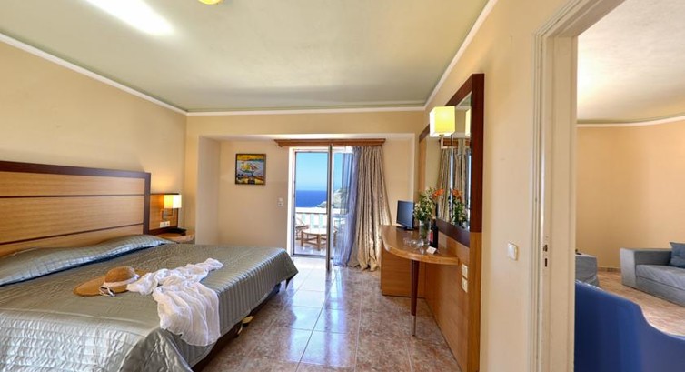 family 2 bedrooms SV (вид на море, дві спальні з дверима (є кілька номерів без дверей), осн. ліжко – 2 односпальні (двоспальне за запитом), додатковий – розкладний диван та розкладне ліжко, 1 ванна кімната, макс. 4 чол. ., 30-35 м2),
