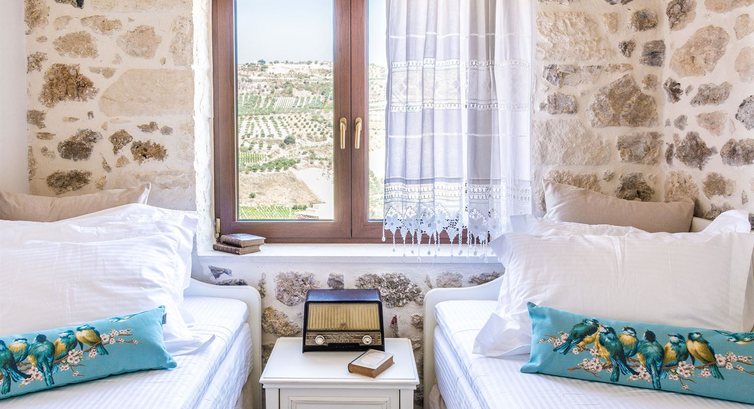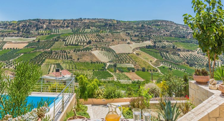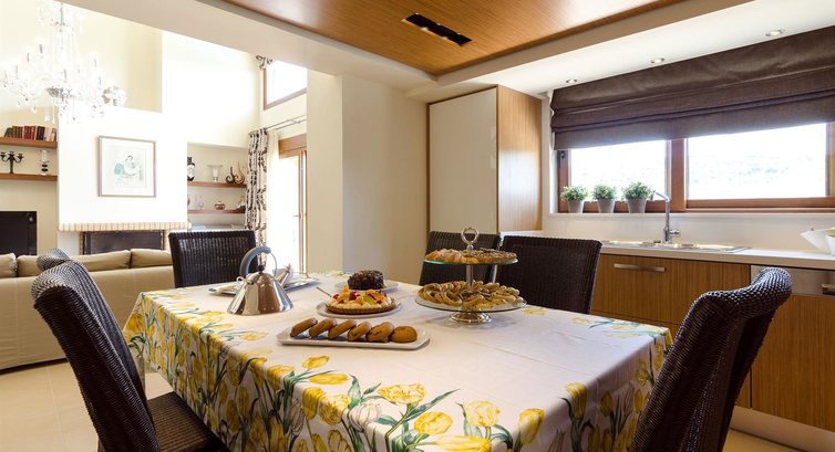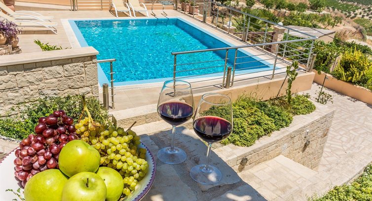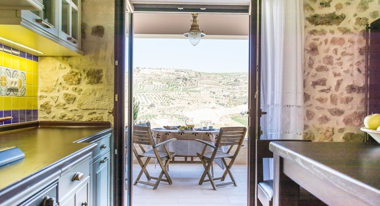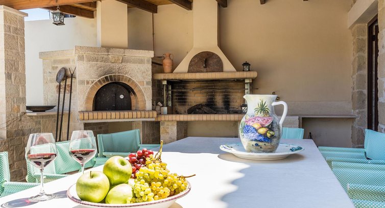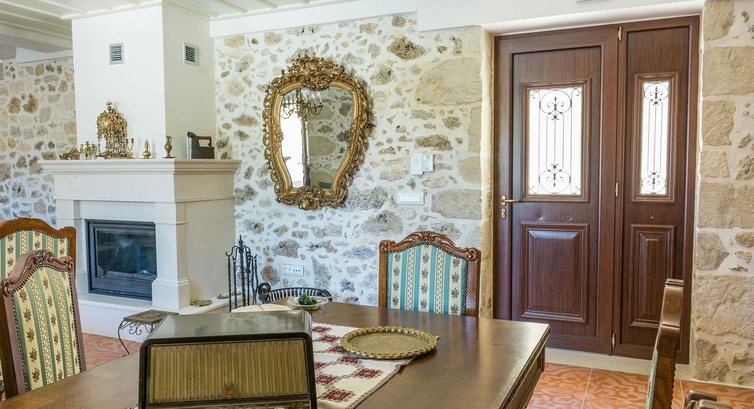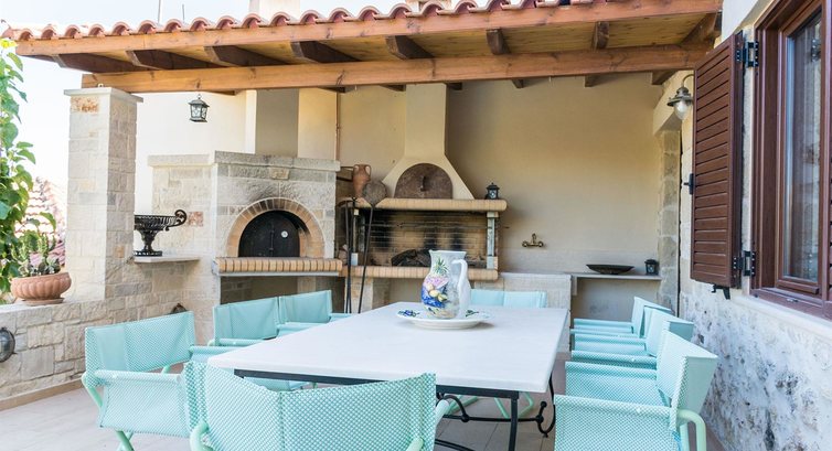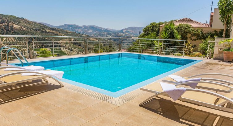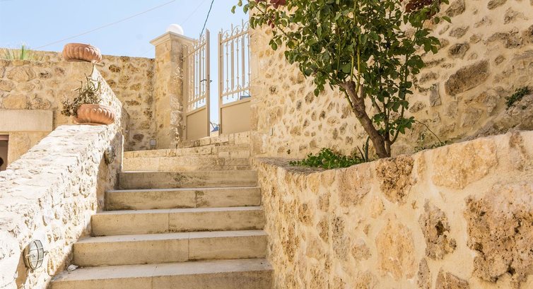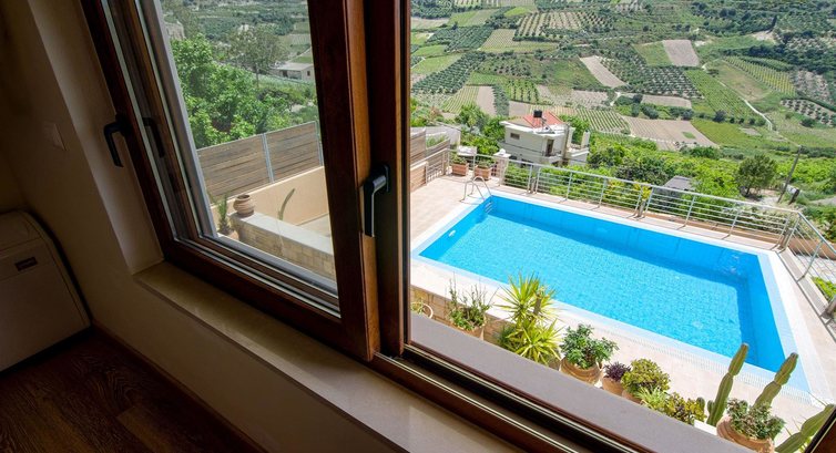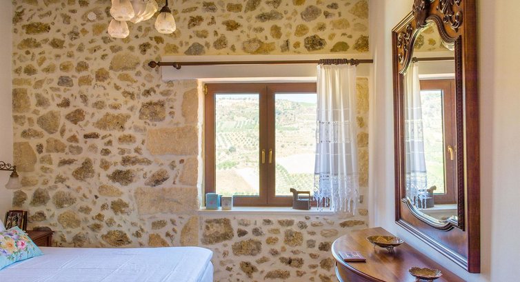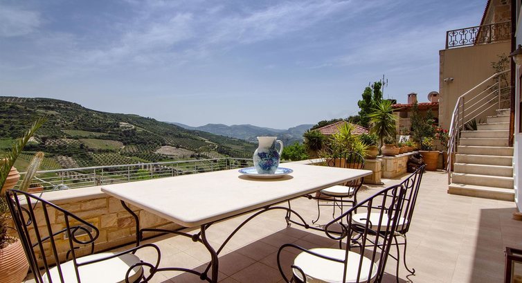 Унікальна вілла з видом на гори знаходиться в традиційному критському селі, за 18 км на південний захід від м. Іракліон. На спільній території знаходяться 2 окремі 2-поверхові вілли, загальною площею 320 кв.м. До оплати приймаються лише готівка.