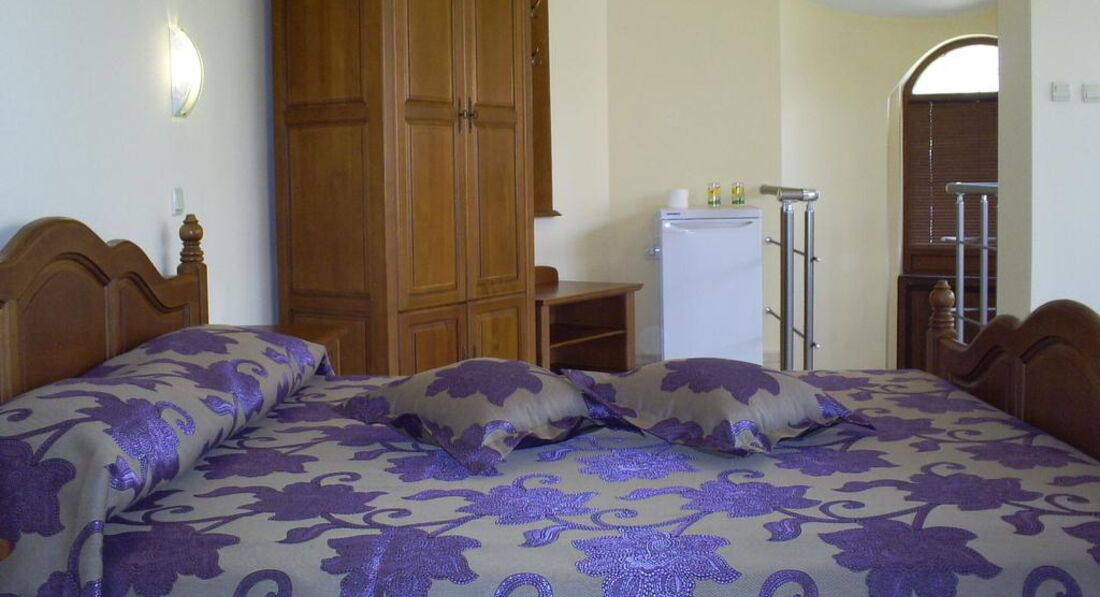 Убирают номера хорошо. Постельное белье меняют раз в три дня, полотенца через день. Кровати очень удобные. Очень хороший кондиционер, бесшумный. Хозяева отеля готовы помочь вам в любую минуту по любому вопросу. Мы брали напрокат машину, чтобы посмотреть страну, так Димитр (хозяин) подсказал нам несколько интересных мест. Каждый день они спрашивали, куда мы ездили, старались рассказать, где еще интересно. По-русски они говорят очень хорошо, общаться с этими людьми безумно приятно и нет языкового барьера. Все время улыбаются и предельно вежливы со всеми.