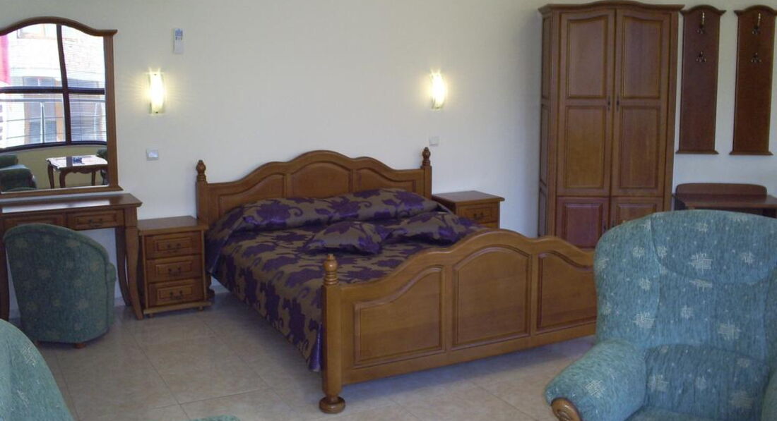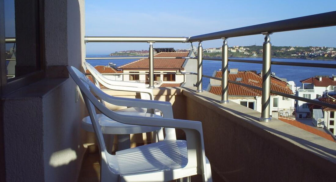 Отдыхали в отеле всей семьей - очень довольны! Не один раз уже в Созополе и есть с чем сравнивать - это один из лучших! Очень приятная хозяйка и добродушный персонал, включая уборщиц. Проживание было удобным, комфортным. В аппартаментах у нас было две комнаты с кондиционерами, холл со столиком, стульями, холодильником, еще один холодильник в комнате, стаканы, чайник, хорошие кровати и мебель, огромный балкон, еще один балкон (не большой), оба со столами и стульями, хорошая сантехника!
