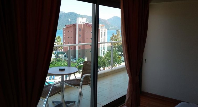 Была в этом отеле в августе 2013 года. Отличная трёшка! Расположение очень удобное- в шаговой доступности и от центра и от пляжа (буквально 2 минуты ходьбы). Собственного пляжа у отеля нет, НО у всех кафешек на набережной есть свои небольшие территории пляжа, где можно валяться на лежаках целый день за чисто символическую плату (например, заказав какой-нибудь коктель).Если не желаете отдавать "свои кровные" - буквально в 10 минутах есть отличный общественный пляж ,очеь чистый. Бассейн в отеле совсем небольшой, но кому он нужен. если море так близко, и такое чистое? )) Комнаты чистые и убирались каждый день. Кормили вкусно. Ужины-это вообще отдельная тема. Очень и очень вкусно! Вокруг нереальное количество кафешек и ресторанов, где можно покушать. До Кипы и Мигроса совсем немного ходьбы, ещё есть Танзаш- всякими вкусняшками перед отъездом закупались в этих магазинах. До Барстрит ходит автобус, но мы, в принципе, "гуляли" до него пешком)) Из клубов понравились Crazy Daizy и Backstreet. Персонал отзывчивый. Итог: по-моему, хороший отель, рекомендую однозначно! Только стоит помнить, что город тусовочный и с маленькими детьми туда ехать не стоит, но если уж хотите именно в Марм-лучше ищите жильё в Армуталане. Обязательно стои посмотреть на поющий фонтан-очень красиво))