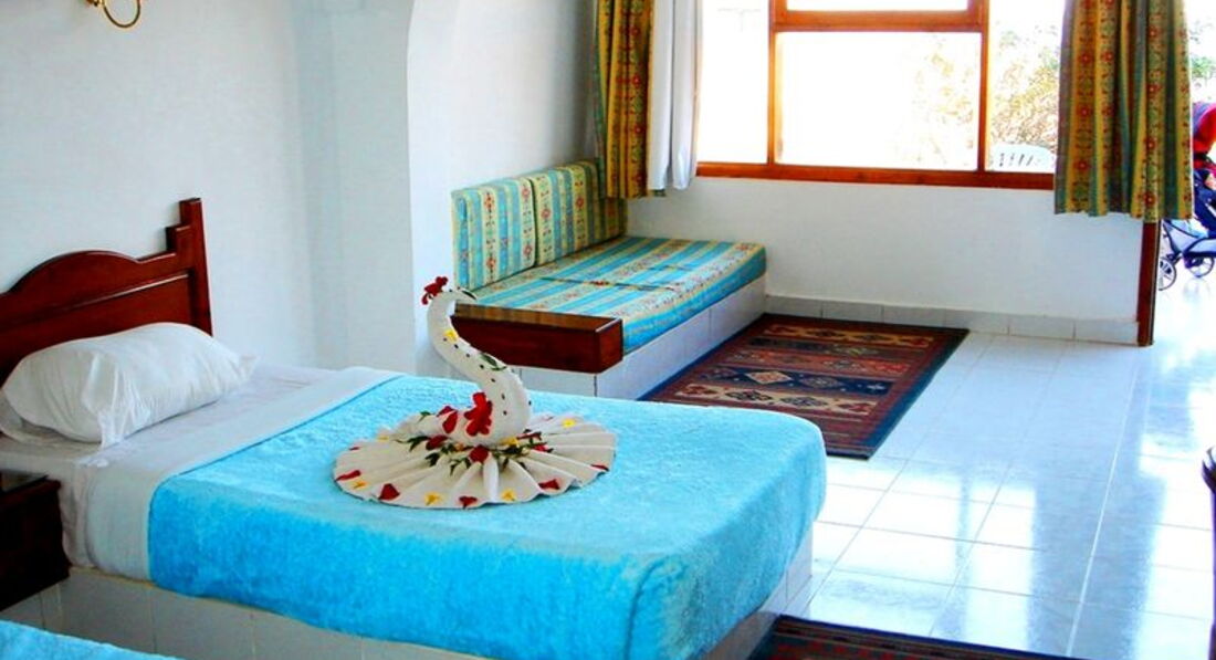 А мне понравилось!!!!!!! Ехала в египетские 3 * и адекватно представляла,что меня ждёт) На самом деле для своей категории неплохой отель,небольшая,но ухоженная зеленая территория,находится на первой линии,вход в море только в специальных тапочках. Кстати, вполне нормальное питание, большой выбор выпечки, мясо,курица-каждый день. Отель для тихого,спокойного отдыха,так что любителям тусовок надо искать другой вариант,так как отель находится в 2-3 часах езды от хургады,выйти здесь некуда. Можно ходить в соседний отель Utopia Beach там повеселее,шоу каждый день,анимация. На территории достраивается клуб здоровья и бар на пляже,но каких то неудобств или шума это не приносит. Номера-бунгало,простые,чистые,убирают каждый день. Очень хороший,приветливый персонал,в ресторане неплохой сервис!!!!! В отеле мало русских, в основном итальянцы,немцы. Так что желающим отдохнуть от городской суеты,в тихой, семейной отстановке-СЮДА!!!!!!!!!