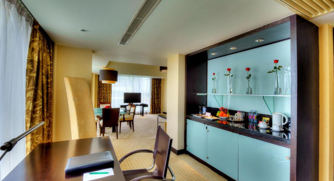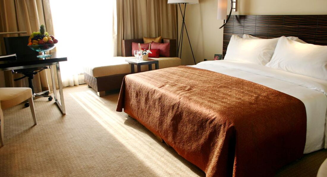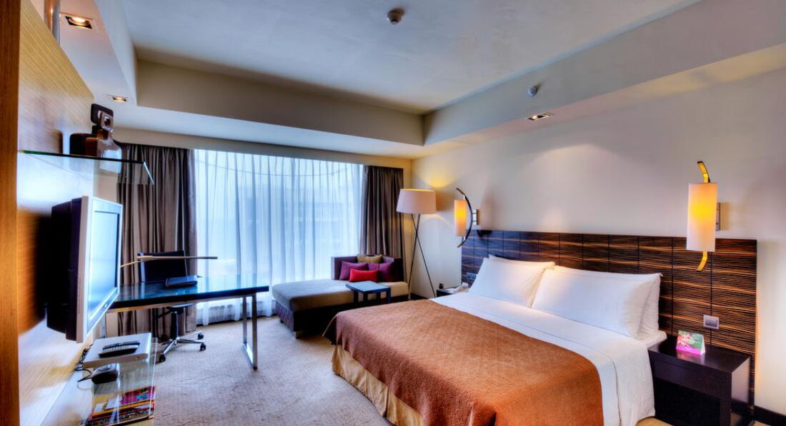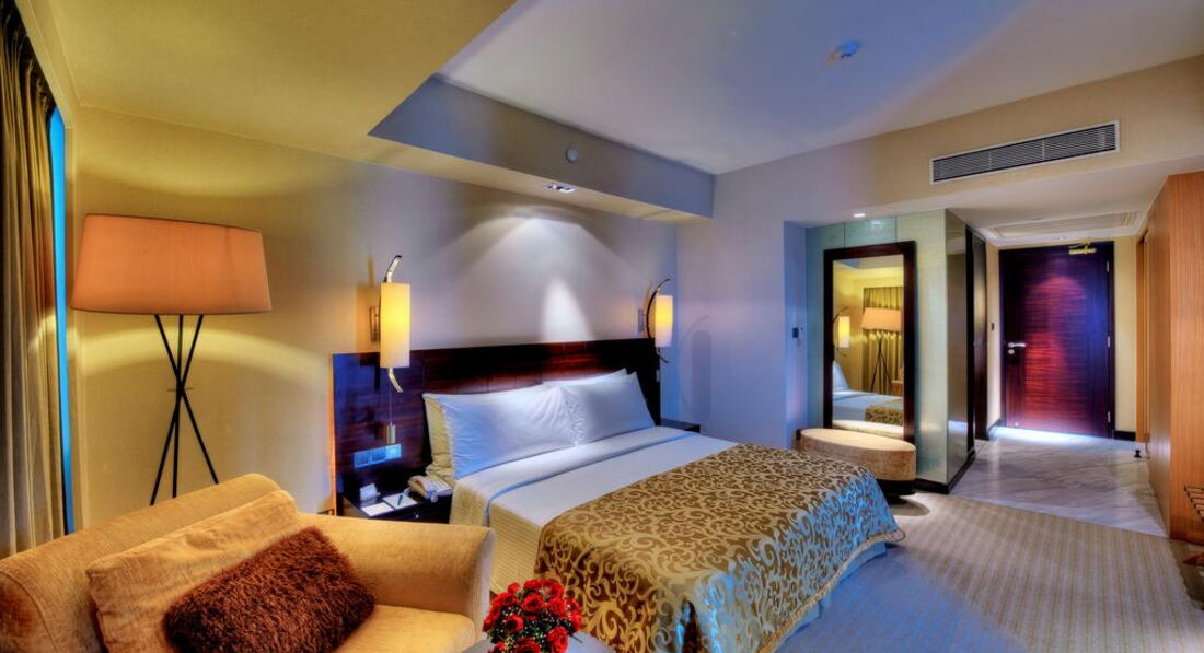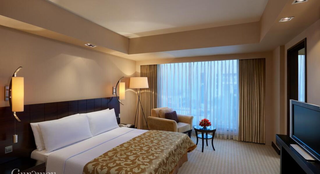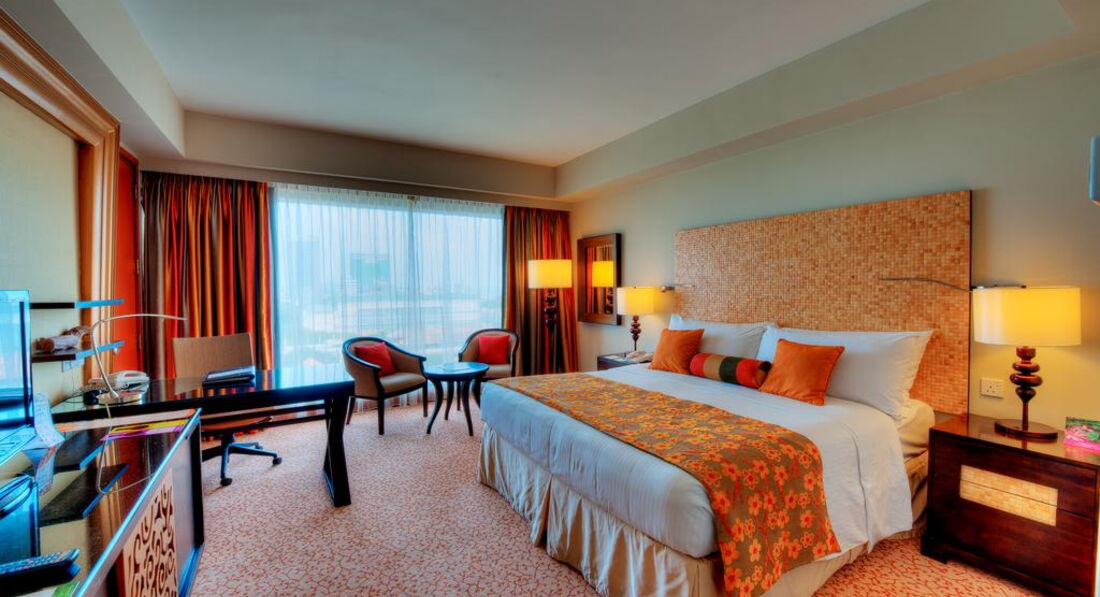 Сам холл, рестораны, территория чудесны! Возле бассейна чудные ресторанчики с небольшими водоемами с рыбой, питание просто супер! Но номера... Сам номер неплохой, но ванная! Настолько тесная! А краны такое впечатление, что останутся в руках при неосторожном движении! :)) Халатов и банных тапочек мы не увидели, балкон отсутствует, окно не открывается. Пробыли там лишь сутки (в рамках экскурсионной программы) и ни капельки не расстроились, покидая это место! Кстати, как только выходишь из отеля и налево - торговый центр. На первом этаже торгового центра от входа по диагонали влево - Интернет-кафе (мы с мобильных не смогли позвонить и написать домой-роуминг не работал, так что очень пригодилось), а если спуститься по экскалатору на минус два этажа, то там супермаркет, в котором можно купить забытые мелочи. А еще на этой улице, где находится отель, живет президент, так что не пугайтесь вооруженного патруля, вдруг решите прогуляться пешком! И переходя дорогу, будьте внимательны - пешеходов там не принято пропускать даже на пешеходных переходах, так что подключайте ловкость и вприпрыжку через дорогу, если вам жизнь дорога! Удачной поездки! :))