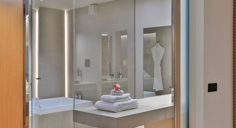 • Water Suite with Pool (208 кв. м, бунгало на воді з власним басейном, ванна кімната з ванною та душем, гамак на терасі)