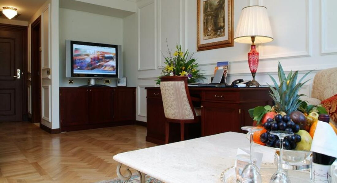 останавливались в номере повышенной комфортности (люкс или делюкс, не могу точно сказать) с большой прихожей, огромной гардеробной (размером с комнаты в некоторых отелях), большой ванной и огромнейшей комнатой, поделенной на зоны: спальную, рабочую, зону отдыха и зону со столом. был также прекрасный балкон с видом на Босфор.