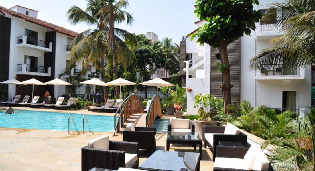 Проживали в этом отеле 2 недели с 10-го по 24-е февраля. Отель на твердую 4-ку. Сначала, когда выгрузились из автобуса, подумали, что отель не очень, так как увидели совсем крошечный ресепшен. Поселили быстро, не стали мариновать до 14 часов, как это положено. Должен сказать, что в отеле совсем не говорят по русски. Поэтому, крайне желательно знать английский хотя бы немного. Отель состоит из 3-х блоков. Новые блоки "А" и "В". Номера вполне хорошие. В отличие от многих других отелей Гоа душ сделан, как кабинка, а не просто отгорожен шторкой. Телевизор - 32 дюйма, может показывать фильмы с флешки, а так же к нему подключен ДВД-плеер. В описании сказано, что есть 1 русский канал, что не соответствует действительности. 86 каналов и нет русских. Зато есть англоязычные, по которым показывают кучу новых фильмов с субтитрами (английскими) - очень удобно, кто учит язык :). В номере каждый день добавляют чай и 2 литровые бутылки воды (бесплатно). Каждое утро на ручку двери номера вешают местную газету (бесплатно).