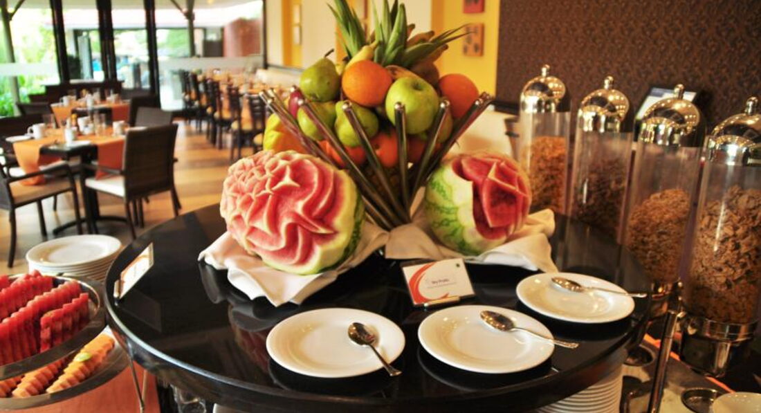 Завтраки нормальные, но я не в восторге, именно поэтому поставила 5 с минусом. Из того, что мне было понятно было: яйца в любых вариациях, макарошки и паста в любых вариациях, фрукты: ананас, папайа, арбуз, бананы малюсенькие, день сосиски, день бекон, картофель, тосты, джем масло, каша была(вроде и овсянка а вроде и пшенка=)) Выпечка не вкусная вся, очень много индийской еды(это и понятно, их много в отеле), но как есть на завтрак что-то острое и сильно жареное я не понимаю=) Наверно это все, но нам с мужем вполне хватало до обеда.
