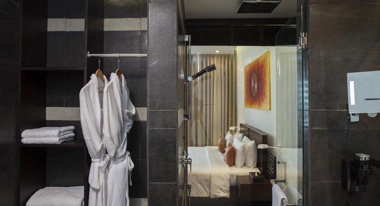 Плюсы отеля: 1) недалеко от аэропорта; 2) новый, относительно чистый, без тараканов; 3) красивый дизайн, в том числе номеров, хорошее наполнение номеров: прекрасная, в меру жесткая 2*2 м кровать, все номера в видом на океан, халат, тапочки, шампунь, гель, ср-во для умывания, бритвенные принадлежности, зубная щетка, паста, и т.д.; 4) вкусная еда, в том числе разнообразные завтраки: всегда есть мясо, рыба, курица, сосиски, несколько гарниров, фрукты, соки, выпечка, сыр, йогурт; 5) огромное количество обслуживающего персонала;