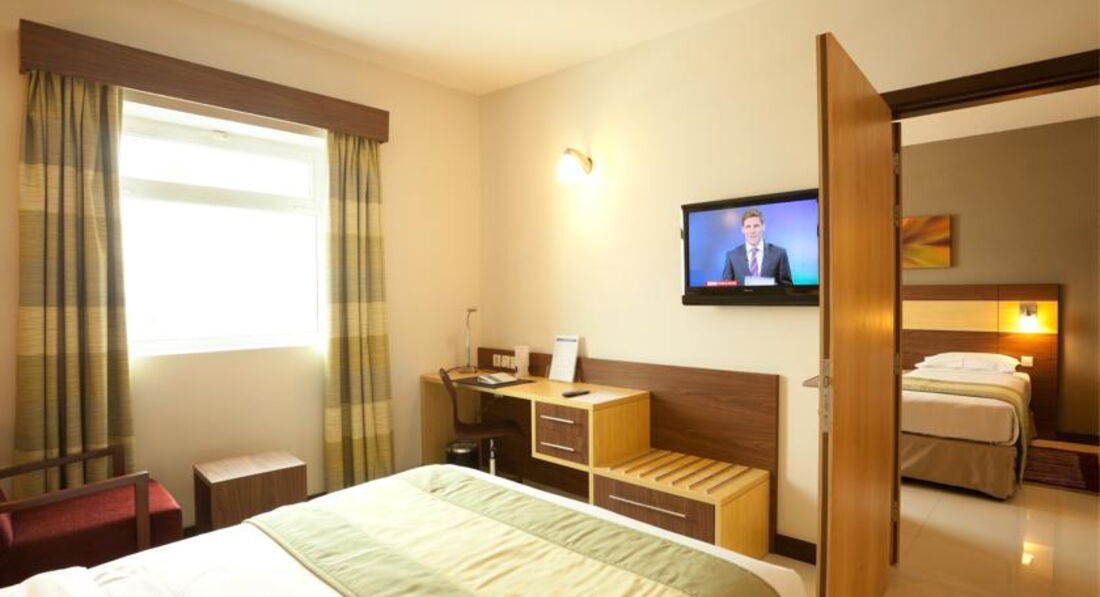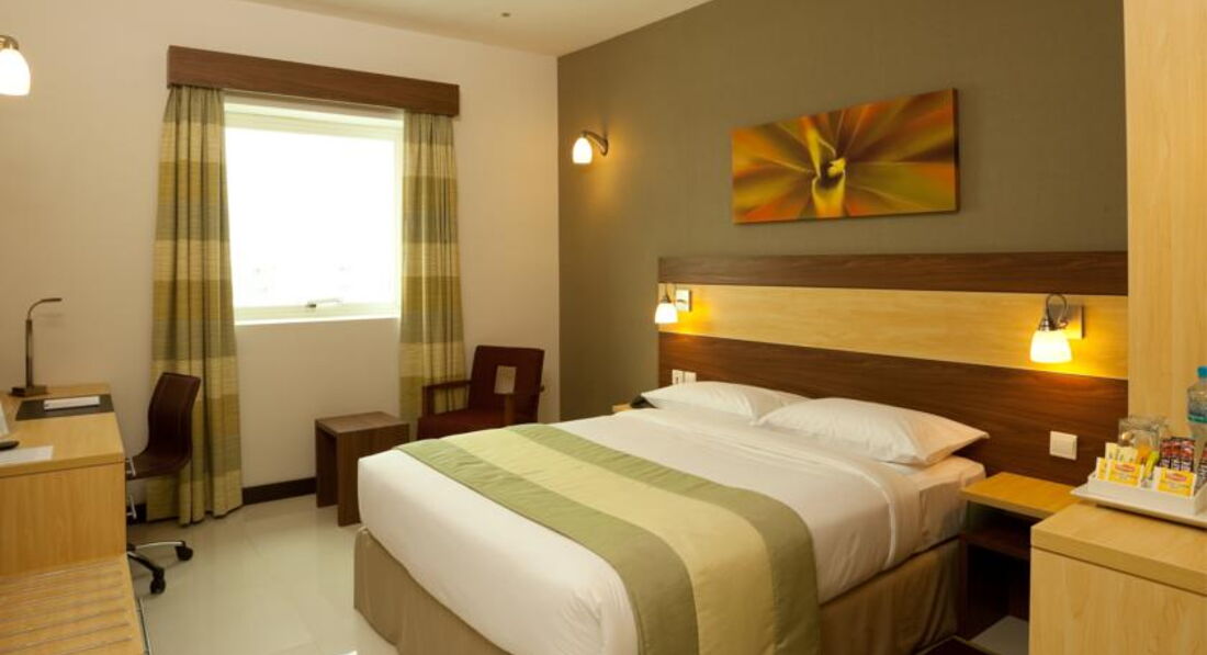 Отелем остались довольны!Несмотря на то,что отель расположен в индустриальной зоне,внутри все очень хорошо,а главное очень чисто:хрустящее белоснежное постельное белье,полотенца.Бесплатный сейф,набор для чая-кофе ежедневно пополнялся.Плазма ,мини-бар.Вид из окна никакой,но мы не для этого летели в ОАЭ,чтобы смотреть в окна)