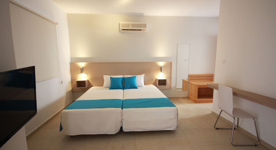 Номер: честно говоря, говоря об этом номере вслух, дрожит голос! ЭТО КОШМАР!!!!! Я знаю, что там есть лучше номера гораздо, но нас зааселили в САМЫЙ УЖАСНЫЙ НОМЕР!!! НИКОГДА, слышите, НИКОГДА не селитесь в номер 3Е!!!!!! Номер на первом этаже, стеклянная дверь. Номер выходит на улицу, АДСКИ шумно, потому что постоянно ездят какие-то мусоровозки, автомобили, ходят орущие англичане (я уж как потусить люблю, и приходили мы в 8 утра, и вроде бы шум обычно не напрягает, но тут невозможно!!). Дело еще в том, что невозможно закрыть эту дверь! Приходилось ее открывать и зановешивать наполовину штору, потому что иначе можно сдохнуть от жары, ибо кондиционер стоит 7 евро в сутки. Ну если представить, что это еще плюс сто евро на 2 недели, так и отель можно было подобрать получше на 5 тысяч рублей грубо говоря. Заходя к нам в номер, все удивлялись, что у нас есть полотенца. Один мой знакомый, сказал что похоже на общежитие и спросил:а ванна у вас есть? на мой ответ:конечно! он спросил: общая? ну понятно, шутки шутками, но глядя на этот номер возникает именно такое впечатление. Главный минус, это конечно кондиционер! Дальше идет размер комнаты, в котором помещаются 2 кровати, шкаф, столик с зеркалом и холодильник. При этом на проход места остаётся чересчур мало. Кроме того, количество света к данной комнате оставляет желать лучшего. Просто тупо ввинченая лампочка странного свечения посреди комнаты. И все. Зеркало на уровне груди. То есть, чтобы, например накраситься, надо было бы на что-то сесть. Я не говорю уже о такой роскоши как СТУЛЬЧИК. пришлось двигать кровать и садится на нее. Холодильник......это что-то с чем-то! Наши соки ПОСТОЯННО превращались в лед! Холодильник морозит ТАК, что у меня В Питере МОРОЗИЛКА так не морозит! Короче, атас. Ну ванная это в принципе место самое приличное из всего номера, не считая что чтобы переключить с крана воду на душ нужно приложить некоторые усилия...пимпочка вылетает переодически. Напор воды сначала был нормальным, потом стал меньше, но терпимо. Света там больше, чем в комнате явно. И зеркало на уровне лица. Там краситься гораздо удобнее. Ну и к тому же в туалете ловит вай фай, который нам дали бесплатно (пароли), хотя вроде бы говорили, что 20 евро за 2 недели. Но я не уверена, потому что в одном из отзывов писали, что он бесплатный. На кровати, которая ближе к туалету, тоже ловит вай фай. А так он ловит в номерах, которые выходят на бассейн. Потому что вай фай соответстенно ловит только у бассейна.