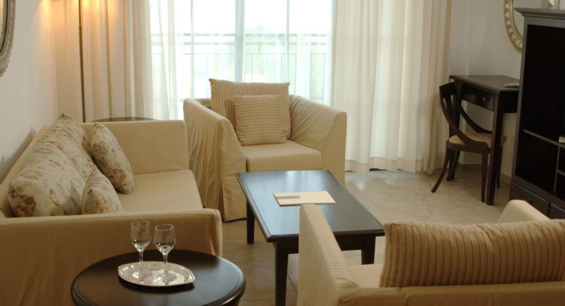 Очень неоднозначное впечатление от отеля. Внешне вроде бы все красиво, территория отеля очень ухоженная, а вот в корпусе (по крайней мере в корпусе А, в котором мы жили), все на "3". Сначала нас удивило сломанное зеркало в лифте, с такой прямо паутиной по всей поверхности. Затем по приходу в номер мы обнаружили неисправный унитаз. В нем не работал слив и вода лилась беспрестанно, отчего на полу в ванной была огромная лужа, такая, что невозможно было подойти к раковине. На нашу просьбу поменять номер, нам было отказано, причем в довольно грубой форме. Только после того, как мы попросили связаться с представителем турфирмы, нам пообещали посмотреть, что можно будет сделать завтра по смене номера. После мы обнаружили, что в душе неисправен держатель для душа, держался на честном слове и при попытке вытащить из него лейку душа, просто выпадал. Следующим сюрпризом было состояние диванчика, дополнительное место для ребенка в номере. У него отсутствовало примерно четверть пружин, которыми прикрепляется матрас спального места к каркасу раскладного механизма. Но поскольку у нас уже сложилось впечатление, что такими проблемами особо заниматься в отеле никто не будет, решили не портить себе отдых разбирательствами с администрацией отеля. Номер в итоге мы тоже менять не стали, потому что были сомнения по поводу того, что он будет лучше. Сантехнику нам все же починили на следующий день. Через неделю у нас пропала часть освещения. Исправили после второго напоминания.