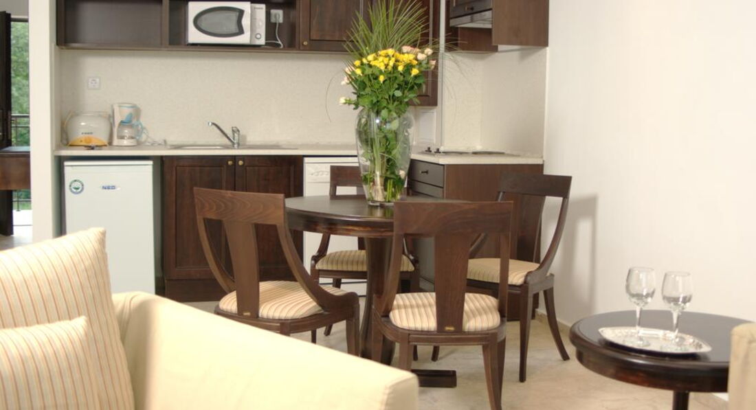 Оne Bedroom Apartment – спальня двоспальним ліжком та вітальня з розкладним диваном та обладнаним кухонним куточком, із суміжними дверима, ванна кімната з душовою кабіною, макс. 2 дор. + 2 дит. або 3 дор, 60 м2;