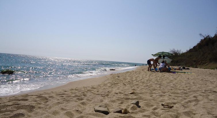 На пляже ничего нет, песок, заход в море мелкий, местами с камнями. По соседству левее находится детский лагерь, там зонтики, от которых всех отгоняют, сидит охрана. Просто лежать и загорать можно. еще в стороне этого лагеря есть каменная лестница на пляж, но оттуда тоже прогоняют, ибо дети, посторонним вход воспрещен. Так что ходить придется по деревянной. Еще момент: как раз на уровне этого места ( где зонтики белые) есть небольшой откос (или отмель), т.е. мелко очень и пляж чуть расширяется. Так вот где-то там на этом мелководье есть яма на дне и при нас в последний день один ребенок чуть не утонул - шагнул, а дна нет. Его мальчик постарше вытащил. Будьте осторожны!!!!! В целом море относительно чистое, мусора нет. Но полно водорослей, медуз и каких-то двухвосток довольно мерзких. Они пару дней просто отравляли существование, а под конец их не стало. Если подытожить: пляжем им нужно срочно заниматься.