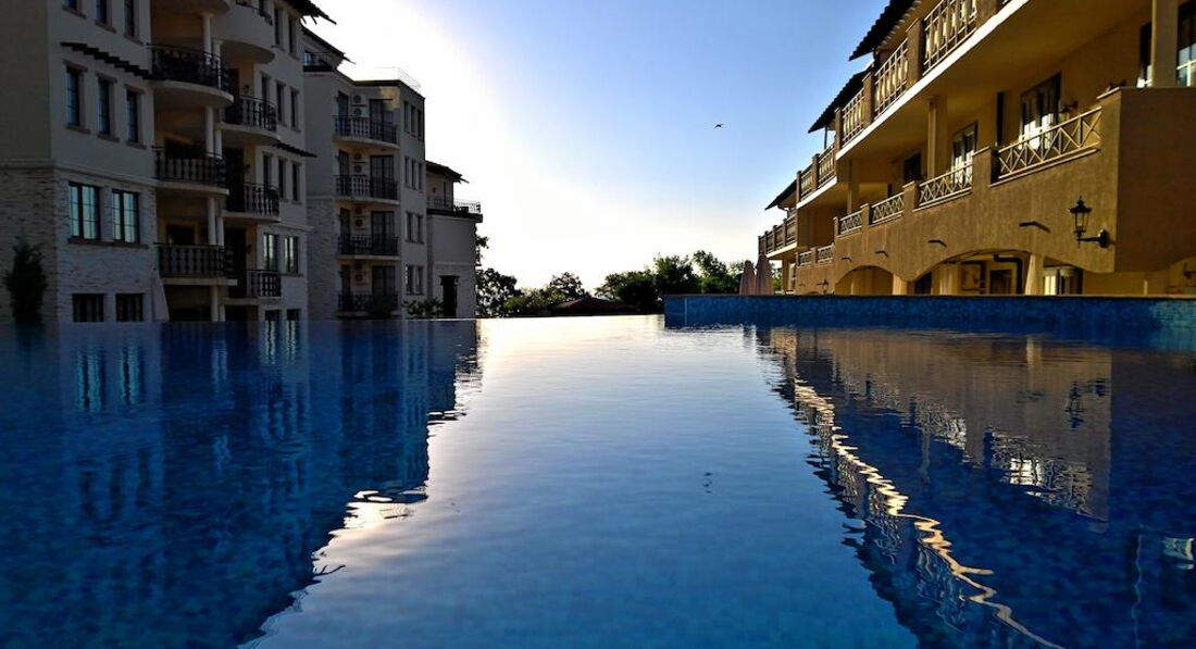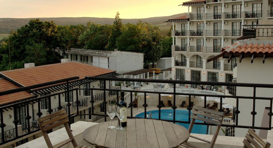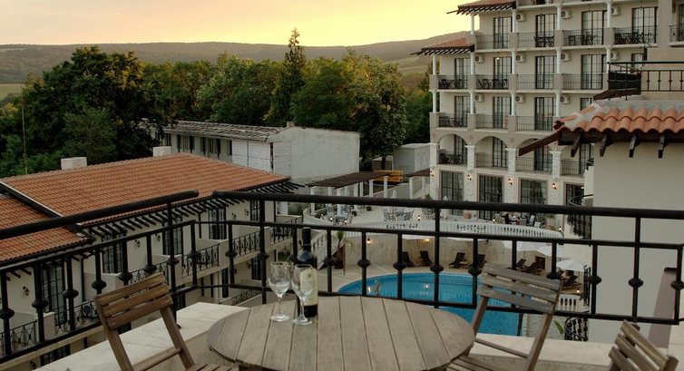 Отель неплохой, новый, стильный, очень красивый, с тремя бассейнами. Стандартные номера все хорошие, на одном качественном уровне! Чистые, просторные! Отель находится в 2 км от городка Обзор!. Мы ездили на такси, ходили пешком по пляжу и пешком по трассе, мимо виноградников (но это чуть дольше, чем по пляжу). В Обзоре очень мило и уютно, куча кафешек и всяких развлечений, особенно для деток) Но все очень компактно, разгуляться негде! Пляж у отеля дикий и почти безлюдный. Развлечений в отеле никаких нет, после ужина тишина и спокойствие! Кто хочет тишины после жизни в больших мегаполисах, тем сюда)