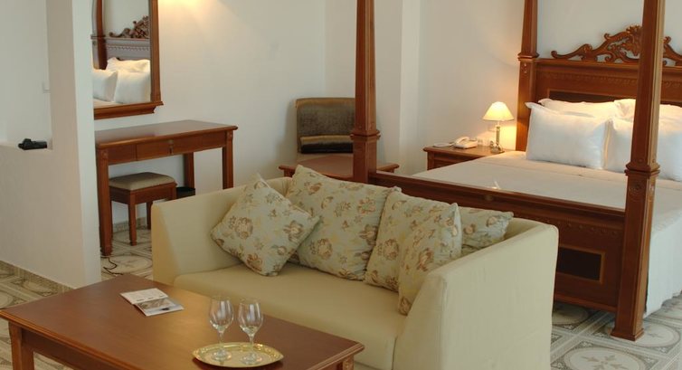 Интерьер и местоположение. Отель находится на холме, оформлен со вкусом с элементами арабского и колониального стиля. Номера и балконы просторны, например ванная комната вдвое больше обычных, метров 8 наверно. Лобби отеля небольшое, как и терраса. Три бассейна расположены ступенями на трех уровнях, территория собственно этим и ограничена -отель стоит колодцем, внутри которого бассейны. Минусы этого расположения - спуск к морю около 260 ступеней по неосвещенной, грубо сколоченной лестнице. То есть мало того, что это удовольствие явно не для малышей и пожилых, но в темноте просто не по себе там прогуливаться. До города надо брать такси, потому что пешая прогулка возможна только вечером, по жаре такой путь будет трудным. Ни шатл баса, ни проката велосипедов нет, так что готовьтесь к доп расходам на такси, если хотите чаще бывать в Обзоре. При отеле нет магазина, нет парикмахерской. Кроме того в городе вкуснее кормят-там стоит бывать. Цены на овощи и фрукты просто смешные.