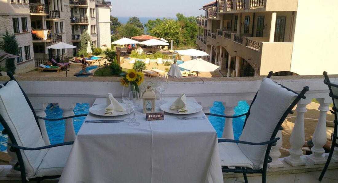 Добрый вечер, туристы :) Мы отдыхали в Клифе в июле 2016 г 14 дней, с ребенком 2,5 года. Прилет был в Бургас, серпантин до отеля нас сильно утомил ((( час в дороге. В этом году будем брать перелет до Варны, ехать столько же ~ 60 км но более ровная дорога. Заселили сразу. Номер на первом этаже с двумя комнатами, рядом детская площадка. Номер очень большой, кухня гостиная в которой большой раскладывающийся диван, стол, телевизор, посуда... в общем все есть. Спальня и ванная комната ( именно ванна была, не душ), все чисто и есть все необходимое. В номере очень приятно находиться, сам отель, ресепшн, территория очень красиво, достойно, твердая 4 ка с плюсом ! Питание: без устриц и омаров))) но голодными не были, стандартные завтраки с омлетами, тостами, сыр, колбаса, каши были пару раз, хоть и просила для ребенка, потом купили и варили сами ( ребенок любит кашу на завтрак). Обед мы не брали и ни разу не были, закупались в супермаркетах и готовили в номере , продукты не дорогие и все очень вкусное, молочка безумно вкусная ! Ужины очень скромные, но всего хватало и всегда было что покушать и нам и ребенку. Это конечно не all inclusive в турецком Dream World resort spa 5* (читайте мой отзыв). Пляж: дорога на пляж коооонечнооо .... лестница уже старенькая, пора бы поменять!!! С ребенком трудно,но не критично. Через дня 3-4 уже привыкли к ней. Сам пляж очень хороший,вокруг никого ( если не считать,что рядом детский лагерь и два раза в день "высыпало" большое кол-во детей) шезлонгов и зонтов нет, в метрах 200-300 есть частные кафе и у них можно в аренду взять 4 лева зонт и 4 лева лежак. Песок ракушник, красивый и приятный, вход в море хороший, наш 2.5 г сын вбегал и любил попрыгать на волнах ( в нарукавниках). Один раз видили отдыхающих нудистов, не поняли из нашего отеля или заблудившиеся, пришлось объяснить ребенку,что дядя забыл плавочки в номере :)))). Через день почти ходили в город, под конец узнали про трамвайчик, который курсирует от начала набережной до центра Обзор. Очень удобно. Там для детей рай и батут и луна-парк, атракционы ,сладости,мороженое, а для взрослых большое множество кафе на набережной, готовят вкусно, много и не дорого. В общем в этом году мы опять в Обзор, с ребенком там идеально, но с отелем пока не определились. П.Сы: климат там потрясающий, июль, а жары и духоты нет, вечером вообще хотелось кофточку накинуть, воздух свежий, не то что в турции мокрый как мышь в духоте.