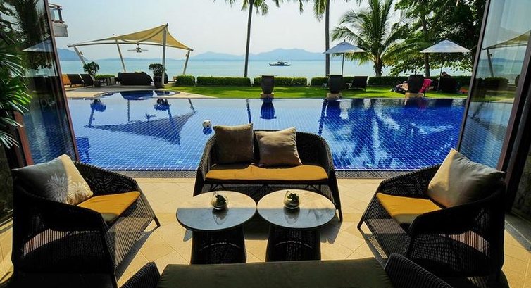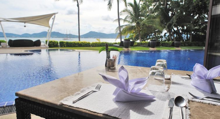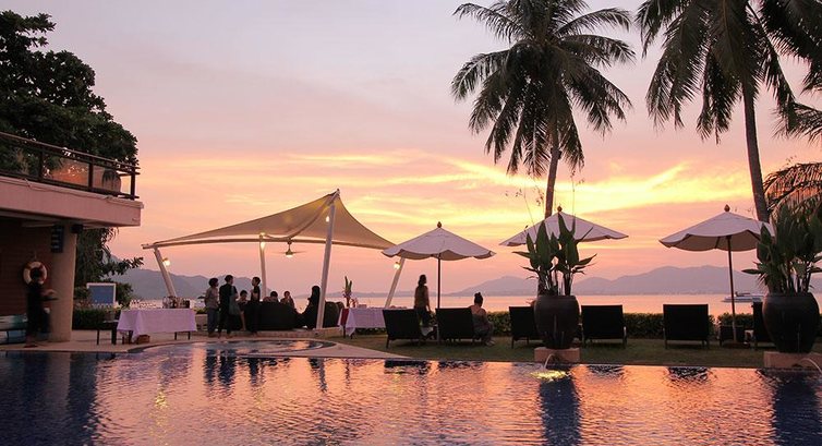 Готель розташований на березі піщаного пляжу бухти Чалонг