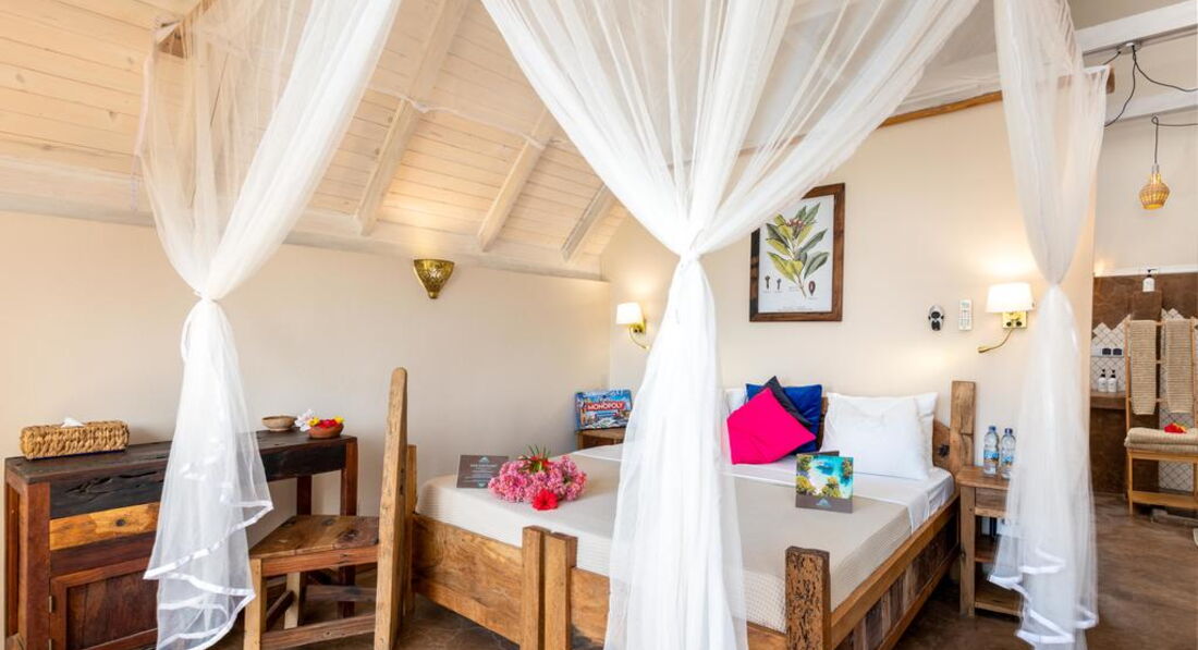 У спа-готелі Clove Island Villas, розташованому в місті Макундучі, є ресторан, безкоштовний прокат велосипедів, відкритий басейн і бар. З усіх номерів цього 4-зіркового курортного готелю відкривається чудовий краєвид на басейн. Гості можуть відпочити в саду та зайнятися водними видами спорту. Здійснюється обслуговування номерів. Для гостей облаштовано спільне лобі та працює пункт обміну валют.