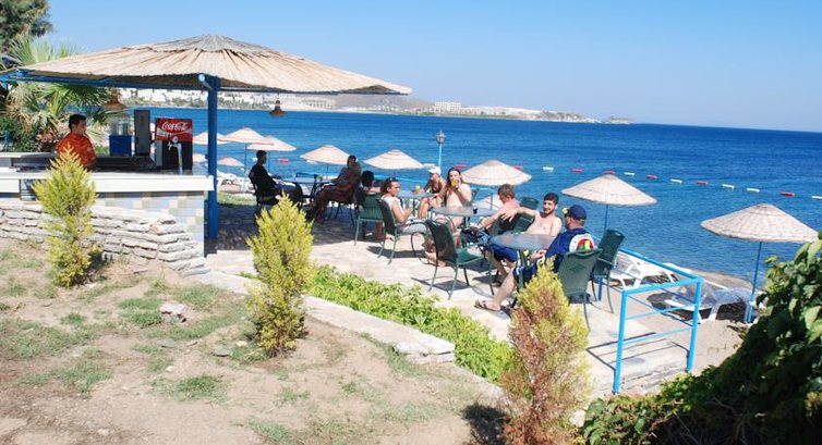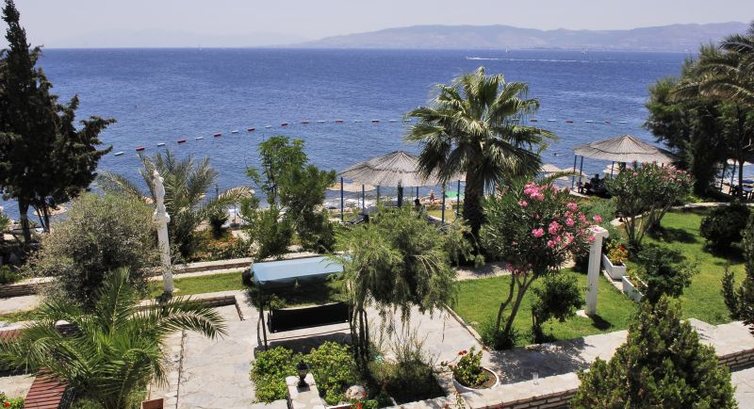 Расположение: Отель находится на мысе, расположенном напротив греческого острова Кос. Через дорогу от отеля находится дачный поселок Akyarlar. Береговая линия отеля составляет около 500 метров и изогнута буквой "Г" на две части - основной пляж, непосредственно прилегающий к главному корпусу отеля - бетонная платформа с чистейшей, но холодной водой и удаленный песчанный пляж с плавным спуском дна и мутноватой, но более теплой водой. При этом песчаный пляж - общий т.к. принадлежит дачному поселку и, вероятно, арендуется отелем. Два пляжа ( а расстояние между ними не более 100 метров) соединяет прогулочная аллея вдоль небольшого дикого, но живописного участка побережья с кактусами и средиземноморскими кустарниками. Отмечу, что на общем, песчаном пляже песок грязный, вперемешку с мусором, по пляжу бегает стая собак, поэтому постоянно чувствуется неприятный запах. Отель имеет основной 4-х этажный корпус, расположенный наверху, дополнительный двухэтажный корпус с балкончиками, обшитый вагонкой и находящийся у моря, а также небольшой сад между ними с многочисленными скамейками, спускающийся террасами к морю от основного корпуса. Отдельное здание Аннекс находится прямо напротив песчаного пляжа в отдалении от основных корпусов. Лежаки и матрасы на обеих пляжах бесплатные и новые, свободного места полно - занимать лежак на любом из пляжей можно без проблем в любое время.