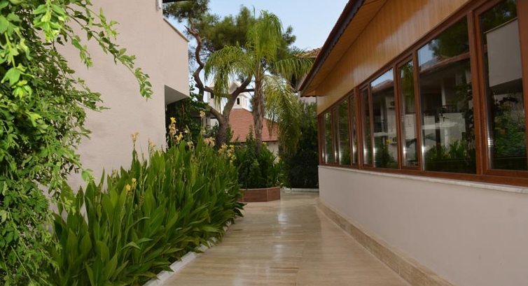 Покупал горящий тур, почитал отзывы, которые на конец мая были не очень восторженные, но прикинув, что поездка в Турцию будет в 2 раза дешевле Черного моря сильно не заморачивался. Как же я был удивлен тем, что мы попали в чудесный отель, похожий на виллу. Территория отеля не большая, но использована с большой рациональностью - здание ресепшн, хамам, за ними корпуса в два ряда, между корпусами дорожка к ресторану, бассейну,бару и на пляж. Дорожка мраморная, персонал моет её по вечерам, из номера до пляжа можно ходить босиком. Территория отеля вся в зелени, трава пострижена, кусты и деревья ухожены, много цветов. Номер у нас был небольшой, две кровати, кресло, шкаф, телевизор, сплит-система, в ванной комнате - душевая кабина. В номере могут быть мелкие поломки - не стесняйтесь говорить об этом на ресепшн, персонал отеля не обладает экстрасенсорными способностями и сам не догадается, а после вашего сообщения все быстро исправят.