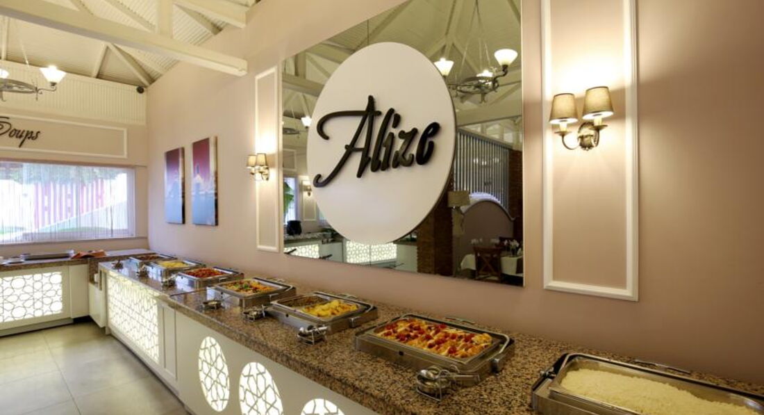 Питание: вот за это я поставила 3! Выбор,вроде бы и есть, но есть нечего. Мы не капризные и не привередливые в этом плане. В турции пятый раз, а за границей 12-ый,т.е. есть с чем сравнить. И в египетской тройке бывало лучше. Кстати, Alize сейчас 4 звезды! Завтраки обычные:яйца во всех видах,иногда блины(невкусные),2 вида хлопьев,привычные для меня йогурты в тазиках появились только на 4-ый день,и то больше похожие на простоквашу. Так же несъедобная колбаса и сыр, но брынза была вкусная. Каш нет вообще. Я не знаю, чем там маленьких деток кормили. На обед и ужин в основном курица и индейка. Тушеная говядина была три раза за 13 дней нашего пребывания, рыба жареная-сухая,невкусная,тоже 3-4 раза видели. И вообще все какое-то пресное и невкусное,даже не похоже на турцию. С выпечкой тоже засада. Привычных эклеров и корзиночек нет вообще, пахлава-1 раз за 13 дней,кексы невкусные, в основном бисквит с кремом в виде пирожных и тортиков. Супы тоже никакие. Много тушеных овощей, очень вкусные баклажаны,печеные и фаршированные,вот их я наелась на год вперед. Порадовал выбор фруктов:арбуз,дыня,яблоки,абрикосы,сливы и нектарины. Один раз был турецкий вечер,вот тогда на ужин был большой выбор: и рыбка-филе вкусная,и люля из баранины на мангале оч вкусные,а еще их национальные блинчики гезлеме с творогом и зеленью и пахлава. Но это было один раз!!! Голодными мы,конечно, не ходили,но такую кормежку мы встретили впервые.