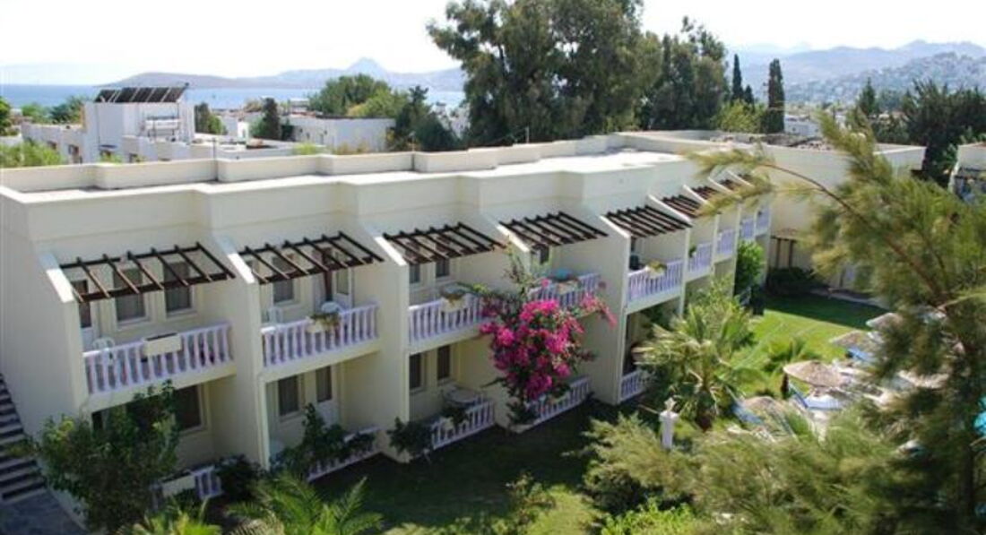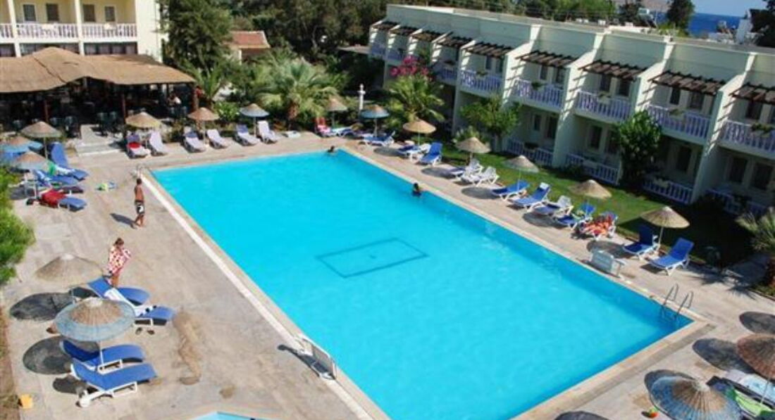 Всем привет!!! долго думала стоит ли оставлять отзыв и решилась может кому то будет полезен,кратенько и по делу,приехали очень рано но рецепция молодцы разместили очень быстро(пока мы сходили на пляж),но учтите что русского языка там никто не знает(Бодрум европенезированная часть Турции)т.е только англ.яз,пляжик действительно свой очень близко и по размеру примерно 3 метра в ширену и пять в длину лежаки один на одном грязные,море очень чистое с рыбками каменистое, лазурное, вечером вообще набережная очень впечатляет красиво,отель не большой, контингент отдыхающих пенсионеры из англии,немцы,поляки из русских мы были одни(и очень этому рады),бассейн детский и взрослый(чистые),что не скажешь о территории отеля,питание одно и тоже изо дня в день,я сдалась на 3 сутки,номера не убирали,я мыла пол сама,за 10 дней ни разу не сменили пост.белье,номер большой с красивым болконом,и вообще по архетектуре отель приближен к Греции,в баре кроме чая и кофе мы ничего пить не смогли,каждый день играет музыка примерно до 24 часов.Вот пожалуй и все по отелю,про Бодрум отдельная история,скажу просто он крут я впечетлена.....