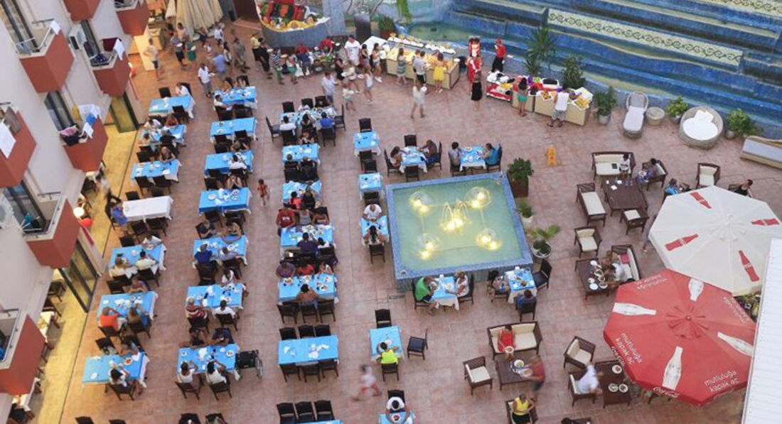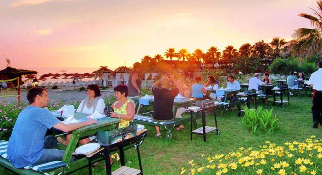Отдыхали с мужем с 14-26мая 2017. Скажу сразу, отель не тусовочный, молодежи в наш заезд не было, зато было много детей и инвалидов на колясках. Аниматоров днем не видела, но дети приходили на пляж разрисованные, веселые и довольные, вечером детская дискотека а затем приглашенные артисты или караоки. Пляж у отеля очень большой, просторный, есть где в волейбол и футбол поиграть, лежаков хватало всем в любое время приходи и найдешь свободный. А море... просто чудо. По поводу питания и выпивки. Готовят вкусно, очередей за едой и напитками нет, да, говядины и свинины нет, но курица в нескольких видах и рыба форель есть всегда, и очень вкусная выпечка. Отмечу работу обслуживающего персонала, они молодцы, в ресторане, барах, на пляже - везде чистота, ребята работают бегом ! Так что отель рекомендую. Мы не пожалели что выбрали данный отель
