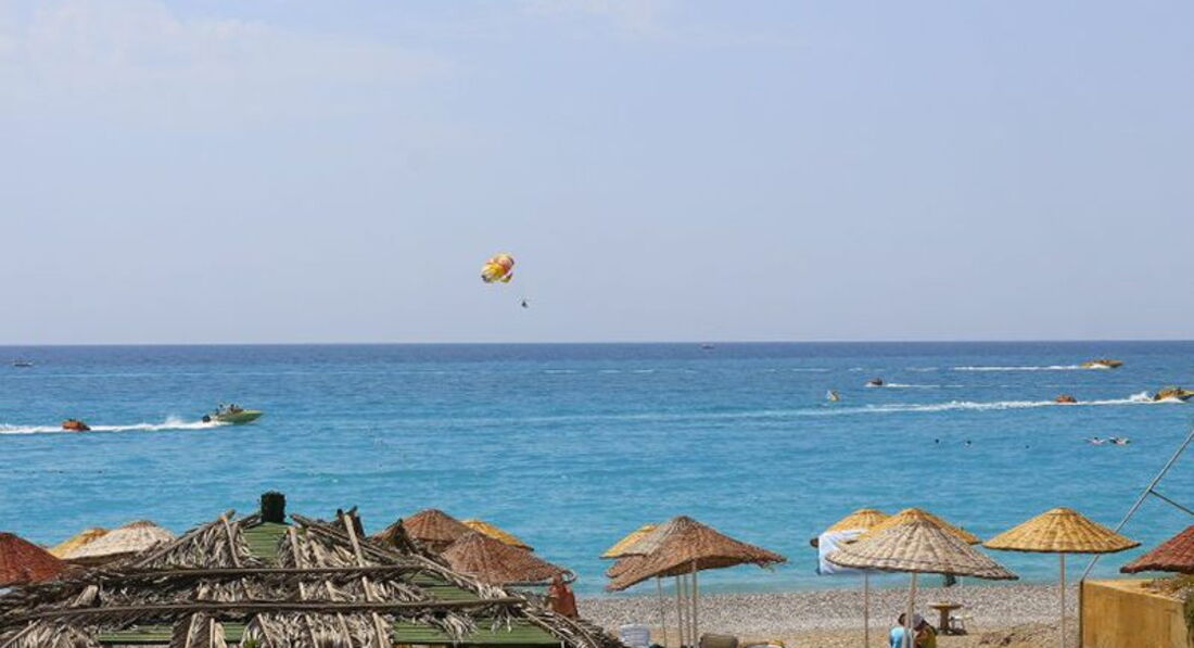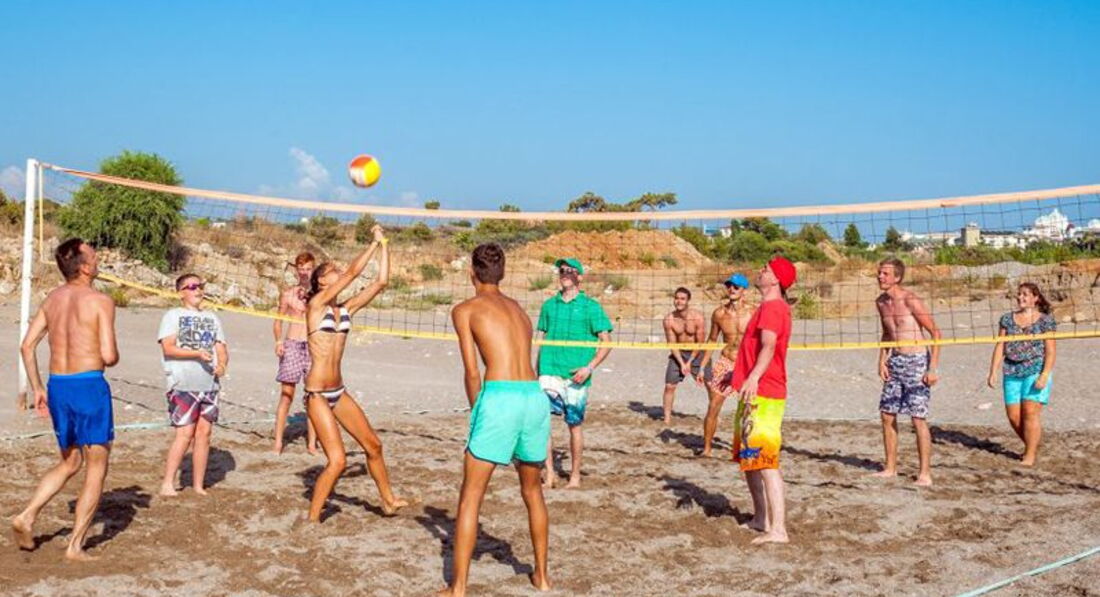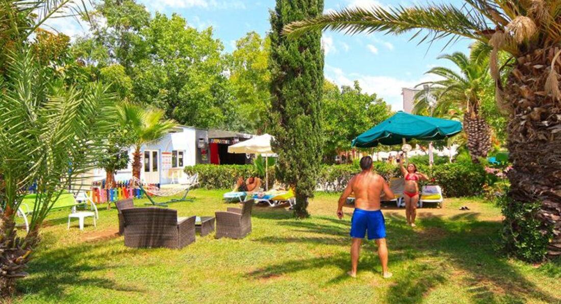 3. Пляж. Первая линия. Есть небольшой пирс для захода в воду. Лучше брать тапки. Особенно для игры в волейбол. Очень мелкие камешки сотрут подошвы. Рядом на пляже отеля Justiniano красивый заливчик с островом. Лежаки начинают занимать ближе к 9 утра. Мы приходили около 8 - всё пусто. Плавали и после 9 шли на завтрак. На пляже есть кабинки для желающих в тени "позагорать" . Было написано, что платно. По факту бесплатно.