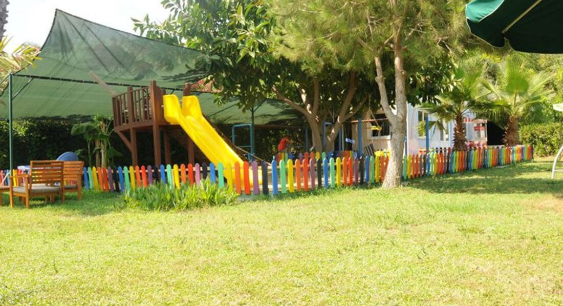 Отдыхали в этом отеле семьей с двумя детьми, вернулись несколько дней назад. Приехали в отель в 9 утра, накормили завтраком. Заселение было в 14.00. В отеле проведен ремонт ( в основном корпусе). Все номера отремонтированы. В нашем номере была двухспальная и двухъярусная кровати), плазменный телевизор, холодильник, фен, эл. чайник , одноразовые тапочки и все что требуется в номере. Территория отеля красивая, зеленая, со множеством качелей, гамаков, диванчиков. Пляж широкий, заход в море галька ( требуются тапочки), валунов при заходе в море нет. Море теплое, постоянно были хорошие волны, на которых можно было качаться. 2 бассейна плюс детский. Вода в бассейне после 17 часов теплая ( подогревается). Питание очень хорошее как для детей, так и для взрослых. Завтрак, обед и ужин. Плюс есть несколько баров, где есть закуски с 12 до 17 часов ( пицца, салаты, картофель фри, курица, овощи, фрукты). Также в это же время мороженое. С 17 до 18 часов полдник у моря ( выпечка и фрукты).А с 23 часов ночной суп. После 00 часов работает ресторан, где можно взять сэндвичи и хот доги. Из фруктов- арбузы, апельсины, черешня, сливы, нектарины. Анимация каждый вечер для детей и для взрослых. Аквааэробика была не каждый день. На пляже играют в волейбол, дартс. Есть теннисные столы с ракетками. Недалеко от отеля располагается большой базар ( Алара гранд базар), примерно 300 метров. Там можно купить все что угодно. Работает он до 12 ночи. Мы ходили туда после вечерней анимации. Брали машину напрокат на сутки за 35 долларов ( не доходя до базара у заправки прокат машин), объехали побережье - были в старом Сиде, на водопадах, заезжали на гору Клеопатра в Алании. Также брали здесь же экскурсию на яхте- после торга вышло 50 долларов на 4-х- двое взрослых и двое детей. На яхте была анимация, купание в открытом море, прогулка по Алании, пенная дискотека!!! , обед и напитки весь день. Прогулку на яхте рекомендую, было очень весело, очень понравилось детям! Немного омрачил отдых Тез тур, забрав нас на 15 часов раньше назначенного времени, и, т. о., украв у нас ночь и еще один день. Но это вопрос уже к туроператору. В целом, отдыхом остались очень довольны, хочется вернуться туда же снова и нам, и детям. Рекомендую этот отель семейным парам, семьям с детьми!!! Возможно, вернемся сюда на след. год!