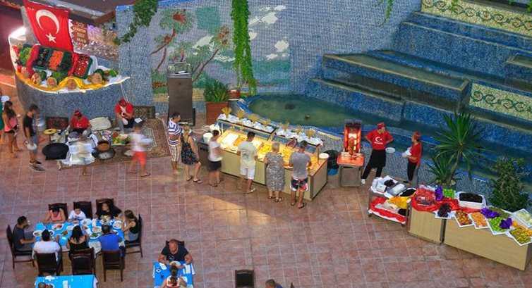 Отдыхали с семьей с малышом 2 лет. Отель соответствует своим 4* - чисто в номерах, территория ухоженная, пляж хороший.Относительно еды - отвратительно!!! Одна химия, соя и перец. Рыба и курица вымоченные в специях, есть не возможно. Номер и одежда все провоняло рыбой, дышать от рыбных дней было нечем. Чай отвратительный в дешевых пакетиках. Молоко соевое, разбавленное. Котлеты также из сои, как голяжки. Ребенок практически был голодным, ел резиновые булки и пил воду. Подхватили инфекцию. Я и ребенок были вынуждены обратиться по страховке (за каждого пациента $30, итого 60$) от отравления такой едой в отеле лежали под капельницей 4 часа. Относительно гида, зовут его Руслан от Интуриста - бесчувственный наглец у которого в глазах только бы содрать деньги. Ни помощи, ни сострадания когда сообщили о своем недуге. Компании ИНТУРИСТ следует задуматься о таком сотруднике, который олицетворяет всю компанию в целом! Про обслуживание - привилегии отдаются немцам во всех отношениях, чуть ли не под белые руки подводят их первыми чтобы они взяли горячие блюда. Полотенца не меняли и номер не убирали, пока не дали чаевые. Спиртные напитки все разбавленные и некачественные. Анимация никакая. В итоге выехать должны были в 20.30, рейс перенесли на 9.00. Хоть мы и потеряли практически целый день, счастью моему не было предела, что едем домой и покидаем этот отель. После такого отдыха лечимся. Никогда не писала отзывы, хоть и объездила пол мира. Отмечу, что в Турции впервые, повелась на то, что ВСЕ ВКЛЮЧЕНО ведь ехала с ребенком, думала не понравится это, предложу другое. Предлагать НЕЧЕГО, ЕДЫ НЕТ. Предупреждаю всех, кто собирается в этот отель с маленькими детьми - БУДЬТЕ ОЧЕНЬ ОСТОРОЖНЫ! Не советую.