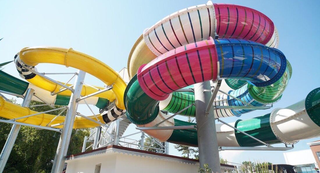 Еще при отеле есть водные горки, решили прокатиться, и очень об этом пожалели! Стыки на обеих горках ужасные, с первого раза ободрали локти! Больше не ходили.