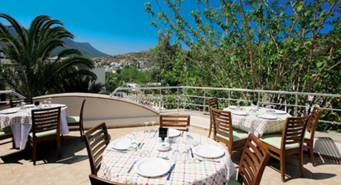 Я бы советовала отнестись к этому отелю, как к даче. Он расположен на окраине (а на мой взгляд, так и совсем за пределами) Бодрума. Вокруг почти деревня. Пройти минут 8 (по жаре еле тащились)), и возле остановки (с нее можно проехаться в город) несколько магазинчиков, палаток (фрукты, купальные принадлежности), банк. В обратную сторону пройтись: море, вдоль набережной несколько ресторанчиков.