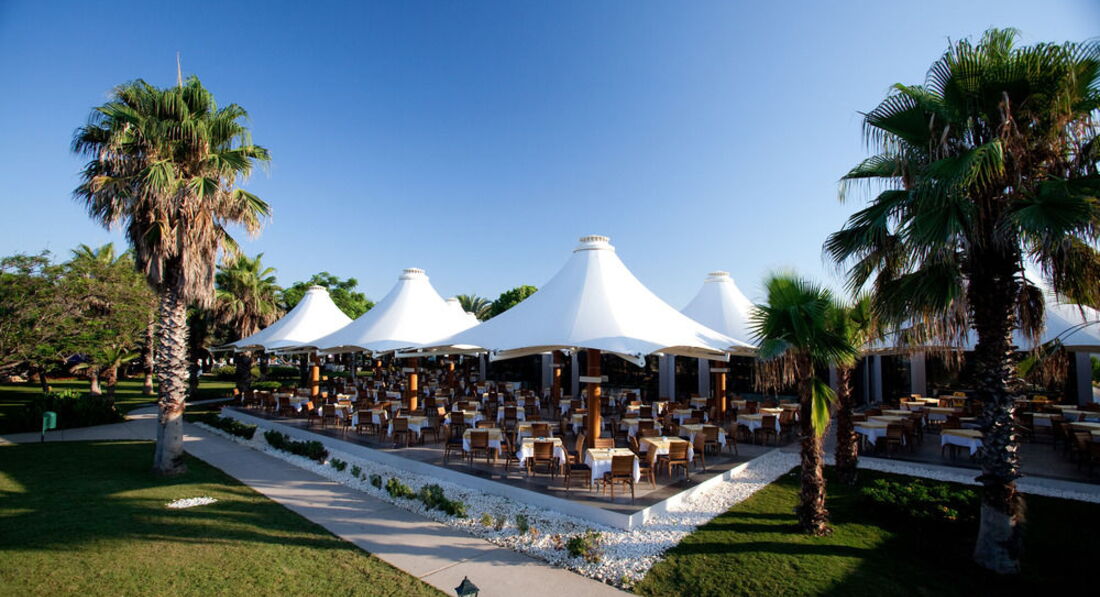 Бари та ресторани: головний ресторан розрахований на 1200 осіб (критий з кондиціонером та літньою терасою, дитяче меню, дитячі крісла, дієтичне меню), лобі-бар, бар біля басейну, бар на пляжі, диско-бар, 3 ресторани A la Carte: китайська, італійська, турецька – безкоштовні, за попередньою резервацією столика. Усі бари готелю безкоштовні.