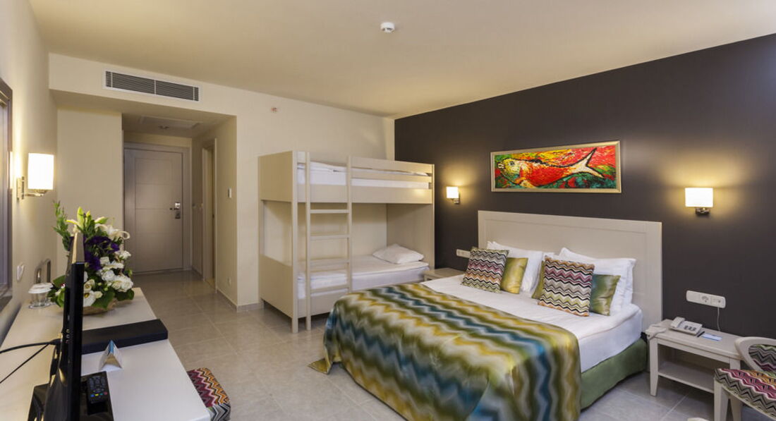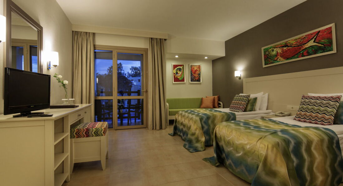 75 family rooms (46-64 м2, 2 спальні, міжкімнатні двері, 1 ванна кімната, garden view, макс. 4+1 чол.)