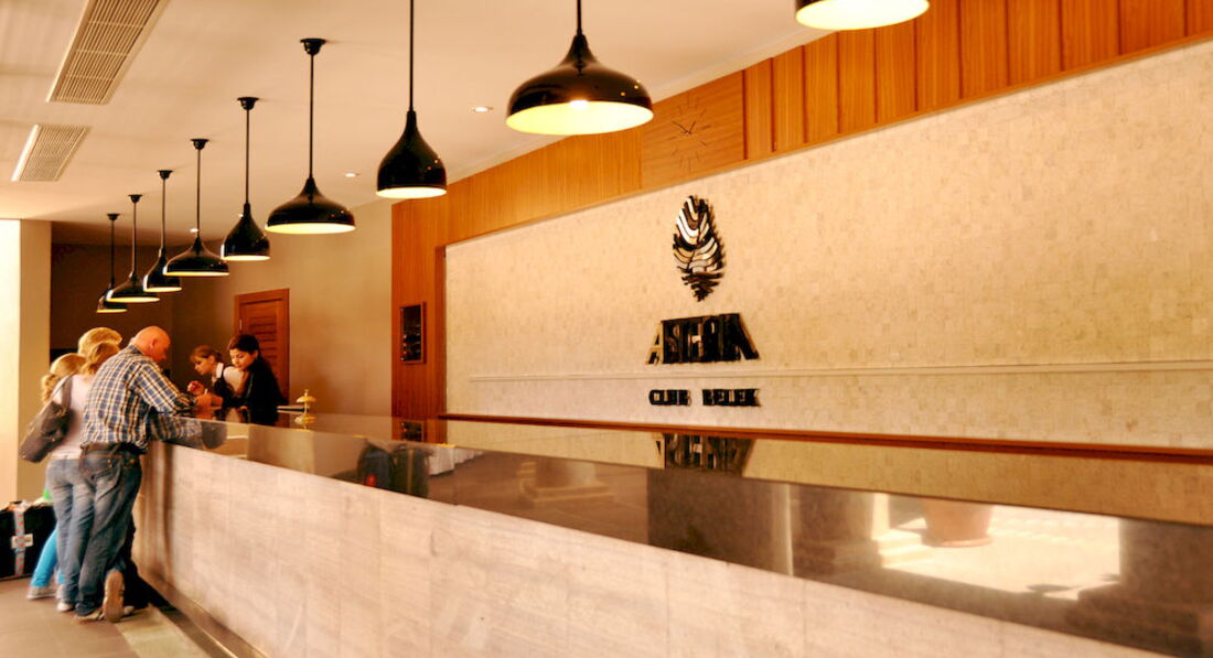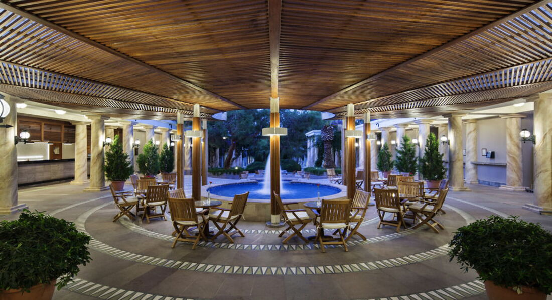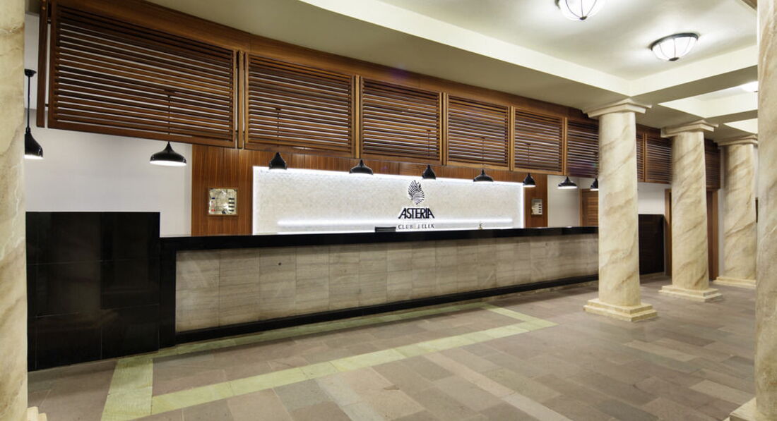 РАЗМЕЩЕНИЕ . В регионе Белек отель самый ближний к аэропорту - привозят одними из первых , забирают последними . От аэропорта минут 25-30 . На рецепшен одели браслеты и отправили на поздний завтрак и погулять . Здесь есть один нюанс - лобби бара как такового нет : ни стойки , ничего ! Но он есть ! На рецепшен все очень красиво , вокруг небольшого бассейна стоят столики - стулья . Это и есть лобби бар . Но , блин , ты не знаешь что есть (никакой стойки с напитками , как в обычном баре) !!! Вокруг ходит официант. Но чаще его нет на месте . Можно подойти к рецепшен и сделать заказ . Но никакой информации о баре нет , и если ты штудировал отзывы - ты герой , если нет - можешь остаться ни с чем - на рецепен услуги лобби бара не предлагают . Это прокол отеля ! Второй нюанс - это кондиционированное помещение . Отдохнуть с дороги или перед выездом в прохладе . Мы нашли это помещение сами случайно лишь через неделю ! Возле пулбара - лесенка наверх с указанием Pergola bar . Правда , бара там уже нет ,там сидят турагенты . Но там есть диванчики и прохлада ! Опять же никто ничего не сказал . А посидеть там в самый солнцепек хорошо .