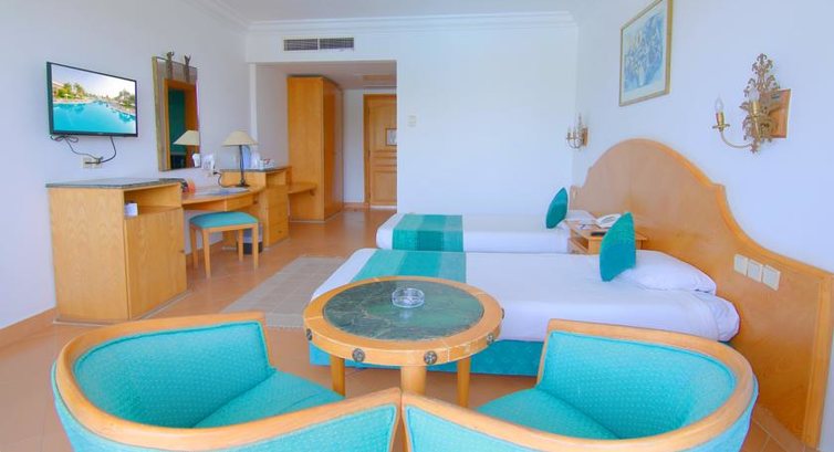 Заселили довольно быстро и никто не просил доплат за номер получше. Персонал нормальные адекватные люди. Всегда улыбаются и если какой вопрос стараются все решить в кратчайшие сроки. Бармены веселые и официанты расторопные. Номер без претензий только пол кафельный. Мыть его конечно проще но скользкий. Есть бесплатный сейф. Мебель в достаточно хорошем состоянии. В ванной комнате все хорошо но косметику берите из дома. Мыло шампуни в дозаторах и не известного происхождения. Фен нормальный по крайней мере у нас работал хорошо. Телевизор жека если кому интересно но мы не включали и зачем он на отдыхе. А вот интернет не большая проблема. Есть только в лобби и то слабенько. Но если сильно нужно купите местную симку и пользуйтесь на здоровье. Уборка неплохо ежедневно и своевременно. Воду приносят. Есть чайник и к нему набор чай, кофе сахар все пополняют. Постельное полотенца не затертые нормальное. Выстируют чисто пятен нет. Пляжные полотенца тоже норм. Выдают у бассейна там же берите красный флажок чтоб к вам на пляже меньше цеплялись торгаши и продавцы экскурсий. Экскурсии рекомендую купить у Mido Bikham можно найти через интернет в соц сетях или поисковик по имени. Гид с большим опытом работа. Стоимость в трое ниже чем в отеле и качество отличное. Мы брали дайвинг, сафари и Каир. Все было на лучшем уровне. Отличный трансфер, вкусные обеды и насыщенные экскурсии. Очень понравилось. Территория отеля очень маленькая. Все компактно. Зелени маловато. Но бассейны хорошие чистые и с лежаками проблем нет. Прогуляться можно в бухте макади но а больше пойти некуда везде пустыня. Зато в отеле спокойная обстановка нет никакой суеты. Питание скажу среднее. О вкусах конечно не спорю и выбор довольно большой но блюда почти не меняют хотя все вкусно но приедается и на глаз и на вкус) Но опять же это личное мнение многим очень нравилось. Видимо я слишком избалованная. В общем хороший отель без изюминок но в целом отлично для спокойного отдыха.