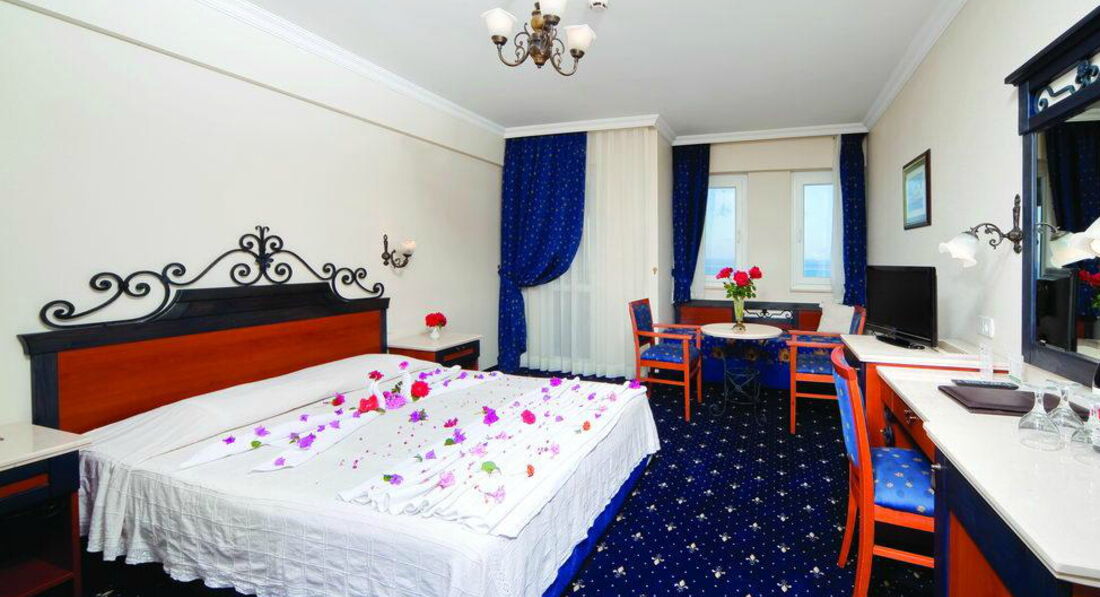 Отель отличный. Прилетели утром, 40 минут от аэропорта и на месте. Несколько приветствий по-турецки и номер без определенного вида превратился в номер с видом на море. Заселили сразу и никто ничего не вымогал и не просил доплатить. Через пол-часа были уже на море.