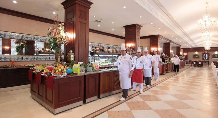 Питание нам не понравилось. Выбор блюд был конечно огромен, но все было очень острое. Чтобы найти что-то съедобное надо было все перепробовать, оставив практически полные тарелки не тронутыми, что было неудобно перед ребятами-официантами. Курица была всегда в разных видах, в обед куриный шашлык. Мясо надо было ковырять в тушенных овощах, пару раз была шаурма непонятно из чего сделанная. Каждый день подавали рыбу, иногда очень даже ничего! Что было хорошо - овощи всегда свежие, сыры вкусные, фруктов всегда хватало. Арбузы, дыни, черешня, персики, нектарины, сливы, один раз яблоки и виноград под конец отдыха. Сладости мне не понравились. Нечто в сиропе, суфле, пудинги, торты прослоенные киселем. Перекус в 16:00 - сэндвичи с соевой колбасой, гамбургеры, пироги в сиропе и утренние булочки. С 17:00 мороженное пока не закончится, и во время ужина тоже. Вообще берешь всего сколько хочешь. Что огорчило - кофе с автоматов только растворимый, чай - тоже из общего заварника. Напитки - "юппи" как и везде в Турции, кола, фанта, спрайт, газировка. Алкоголь - пиво Tuborg, водка, джин, "мартини", местный виски, вино красное и белое.