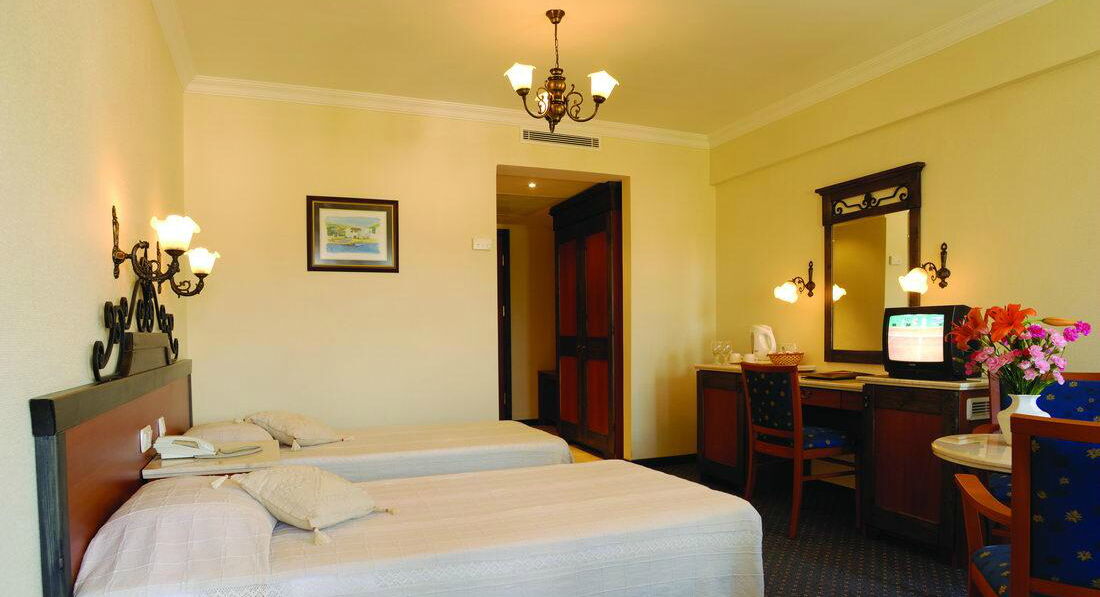 Уютные, чистые номера (мы заранее в агентстве доплатили, заказав с видом на море - с пятого этажа был потрясающий вид). Убирают каждый день, но чаевые в виде доллара горничная почему-то не взяла. Несмотря на компактность территории, тесноты не ощущалось. Отличный ухоженный мини-парк, просторный пляж, два бассейна. Все рядом и довольно удобно. При входе в море - крупная галька, но дальше мелкий песок. На эгейском побережье впервые, порадовала небольшая влажность, благодаря ей комфортнее, чем на анталийской стороне.