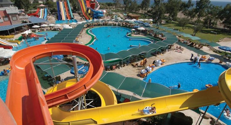 Одно из главных достоинств отеля - бесплатный доступ по будням в аквапарк. Горки отличные! Есть пару действительно страшных. Из аквапарка можно выйти на пляж, искупаться в море, и вернуться снова на горки. Питание там - типичный фастфуд, но перекусить можно. Транспорт в аквапарк из отеля ходит в 10.30 и 14.30. Один раз ходили пешком по морскому берегу, дорога заняла минут 10.
