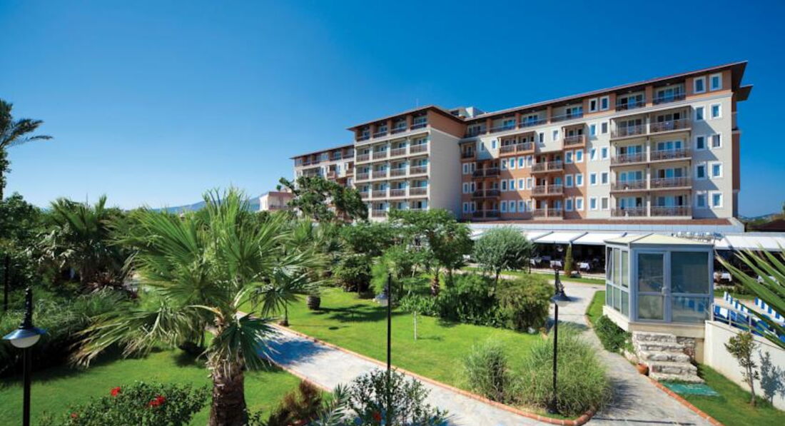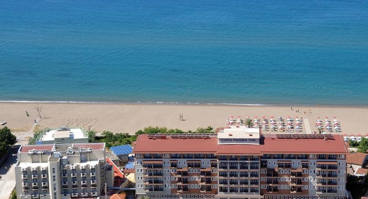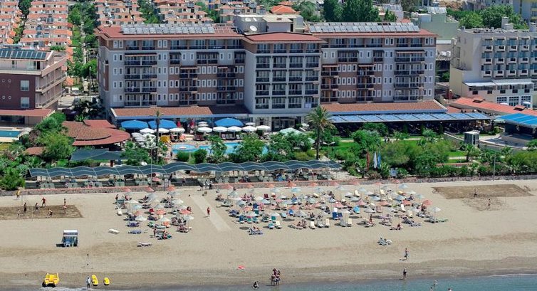 Отдыхали в отеле с 28 авг по 07 сент. Компания Тезтур привезла нас в автобусе в отель в 8 утра и нас заселили сразу же, не дожидаясь 2 часов дня. Но номер наш выходил не на море, а на улицу, номер с видом на море стоит +3500 руб. к путевке. Мы решили не покупать номер с видом на море, потом пожалели конечно, на улице очень шумно, с утра до вечера, и с вечера до утра приезжают автобусы, грузовики с едой, просто ездят мимо автомобили - было очень шумно (даже с закрытой дверью на балкон). Хотя в целом номер хороший, отель отремонтирован, ванна чистая, когда заехали - была забита раковина, обратились к горничной, на другой день пришел мастер и все прочистил. Весь персонал отеля говорит на французском, немецком и турецком языках, на ресепшене не все понимали английский, но многие. Мы говорили на англ.языке - нас очень старались понять все. Еще некоторые аниматоры знают английский. Если вы знаете только русский язык - советуем запастить терпением, так как русский не знает никто, кроме гида. Да и то, он бывает в отеле далеко не каждый день. Отель просто отличный - атмосфера супер. Все стараются, горничная убиралась хорошо - оставляли в номере по 1 доллару+рус. шоколадку. 2 раза засыпала кровать цветами и т.п. В ресторане очень большой выбор блюд, всегда можно найти что поесть, много салатов, горячие блюда меняются каждый день и выбор большой. Очередей за едой нет, так как кругом отдыхают европейцы все очень цивилизованно. Лифты работают исправно. Анимация и сами аниматоры просто супер! Позитива масса, все время какие-то конкурсы, мероприятия. Море чистое, пляж песчаный, но есть 1 метр камней при входе в воду. 2 бассейна - 1 с горкой с детей, другой 140 см глубиной для взрослых. С пн по пт можно бесплатно посетить аквапарк (очень классный) до которого около 1 км. пешком или 2 раза в день можно доехать на паровозике. Что не понравилось: 1. В отеле не выдают пляжные полотенца, поэтому или берите из дома, или покупайте на месте - 7 евро. 2. Очень грязно и скучно в мини-клубе для детей, поэтому ребенок почти все время был с нами, то на море, но в бассейне. Остальные аниматоры (для взрослых) на высоте - а вот детский аниматор подкачал (((( 3. Чай в столовой - это не тот самый турецкий чай, а просто обычная заварка (греется целый день и получается почти чифирь) 4. Если вы не знаете иностр. языка вам будет тяжко общаться. Из плюсов 1. Бесплатное мороженое в отеле, большой выбор фруктов. 2. Очень хорошая и насыщенная экскурсионная программа 3. Чистая территория, лежаки всегда есть и у пляжа и у бассейна. 4. Всегда есть что поесть - есть перекусы между основные приемами пищи. 5. Зумба дэнс - очень классные танцы и аниматор, который их ведет Тогу!!!!!!! 6. Еда есть и перченая и пресная. 7. Развлекуха есть на любой вкус - гольф, петанк, волейбол, футбол, аэробика, детская дискотека и т.п. 8. Рядом улица с базаром, где торгуют разными сувенирами, одеждой, обувью, сумками. В общем нам очень-очень понравилось. И детям тоже. Думаю, что также отель подойдет и для молодежного отдыха тоже. Рады, что выбрали именно этот отель, будем его всем рекомендовать. Получили массу позитива, загорели, отдохнули!
